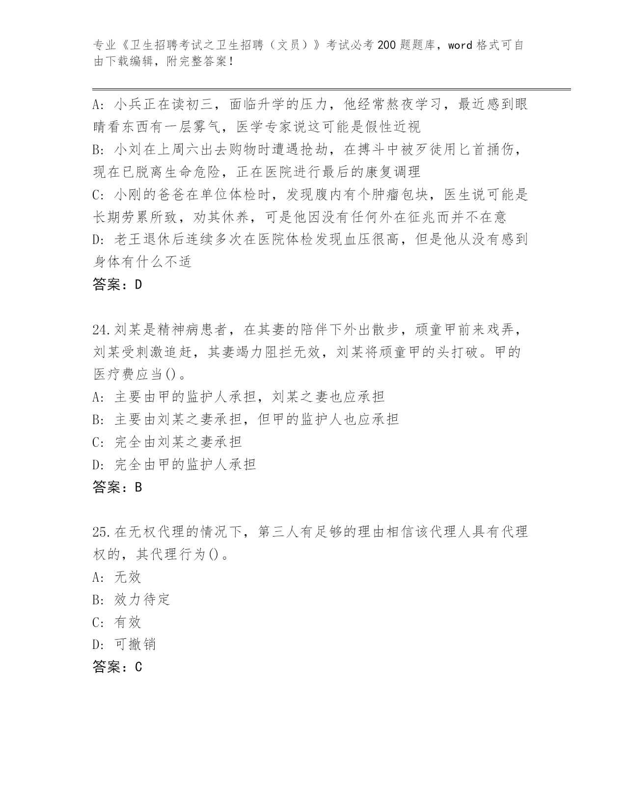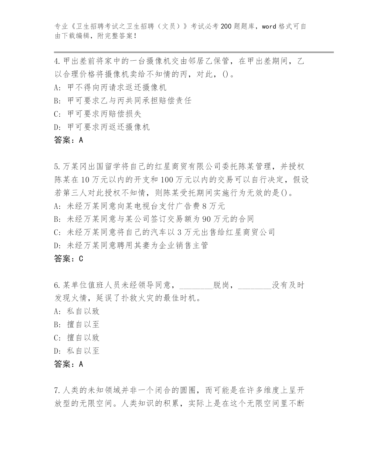 2024四川省德格县《卫生招聘考试之卫生招聘(文员)》考试必考200题内部题库【典型题】