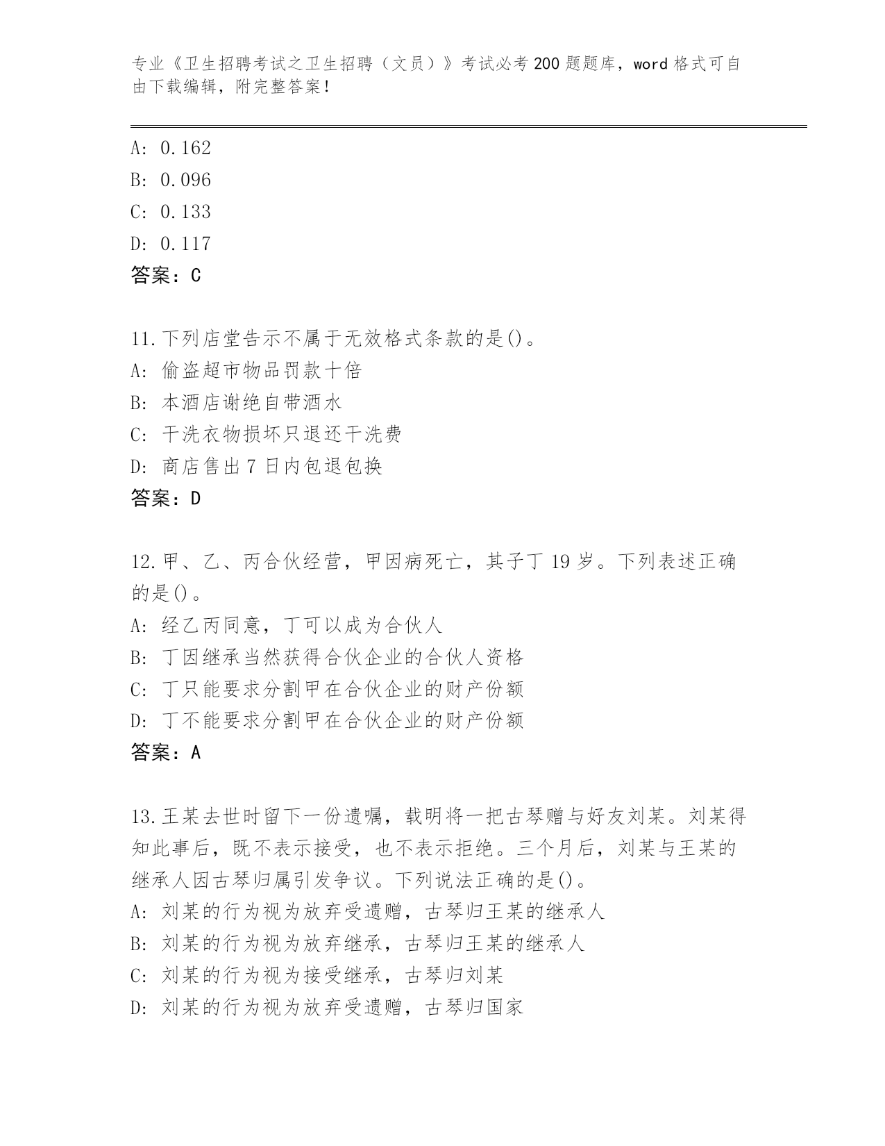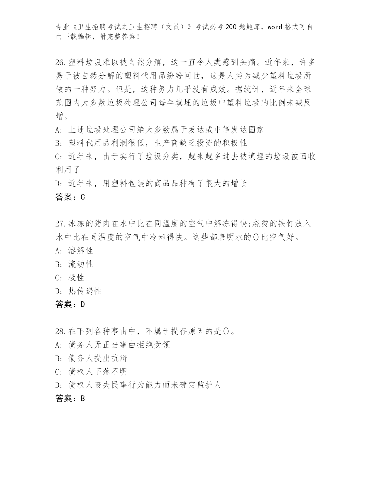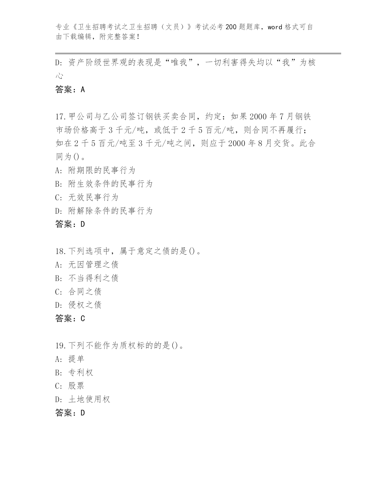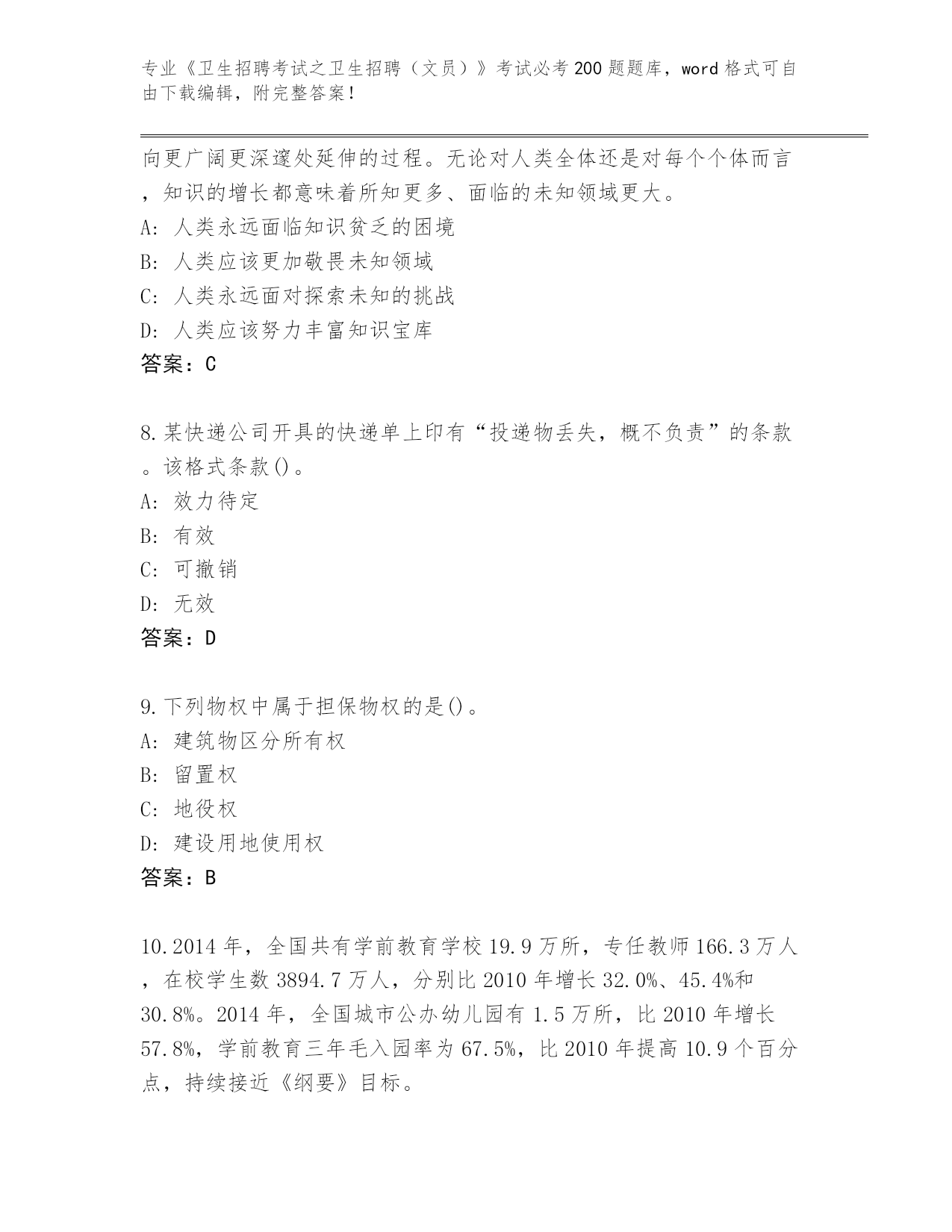 四川省德格县完整版《卫生招聘考试之卫生招聘(文员)》考试必考200题大全带答案(基础题)