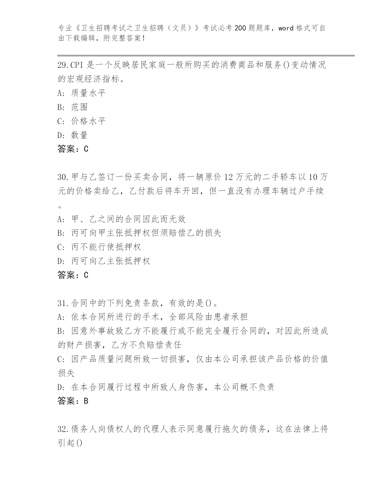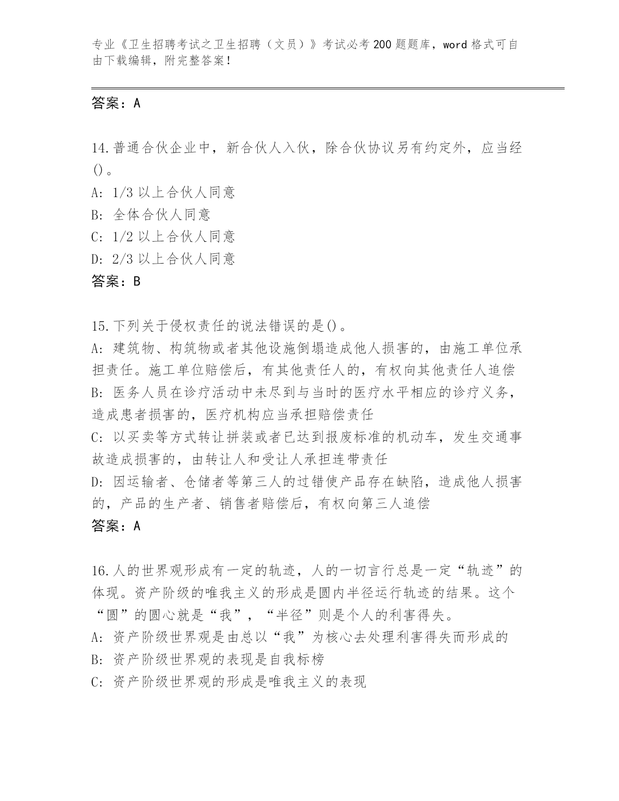 福建省整理《卫生招聘考试之卫生招聘(文员)》考试必考200题【预热题】
