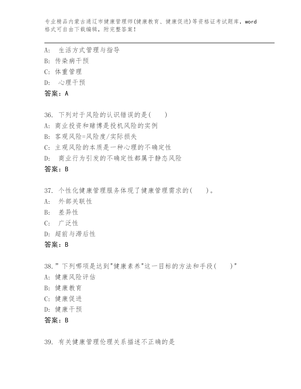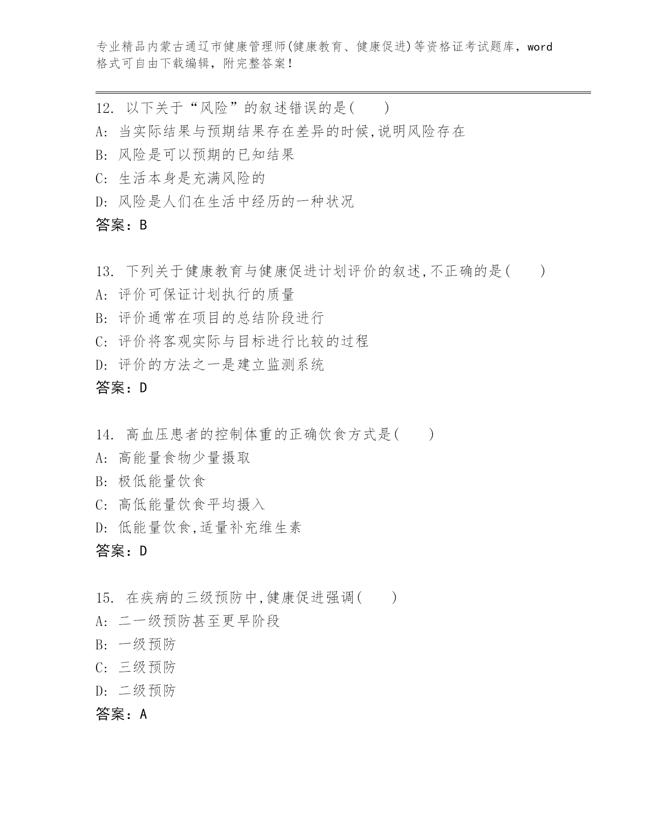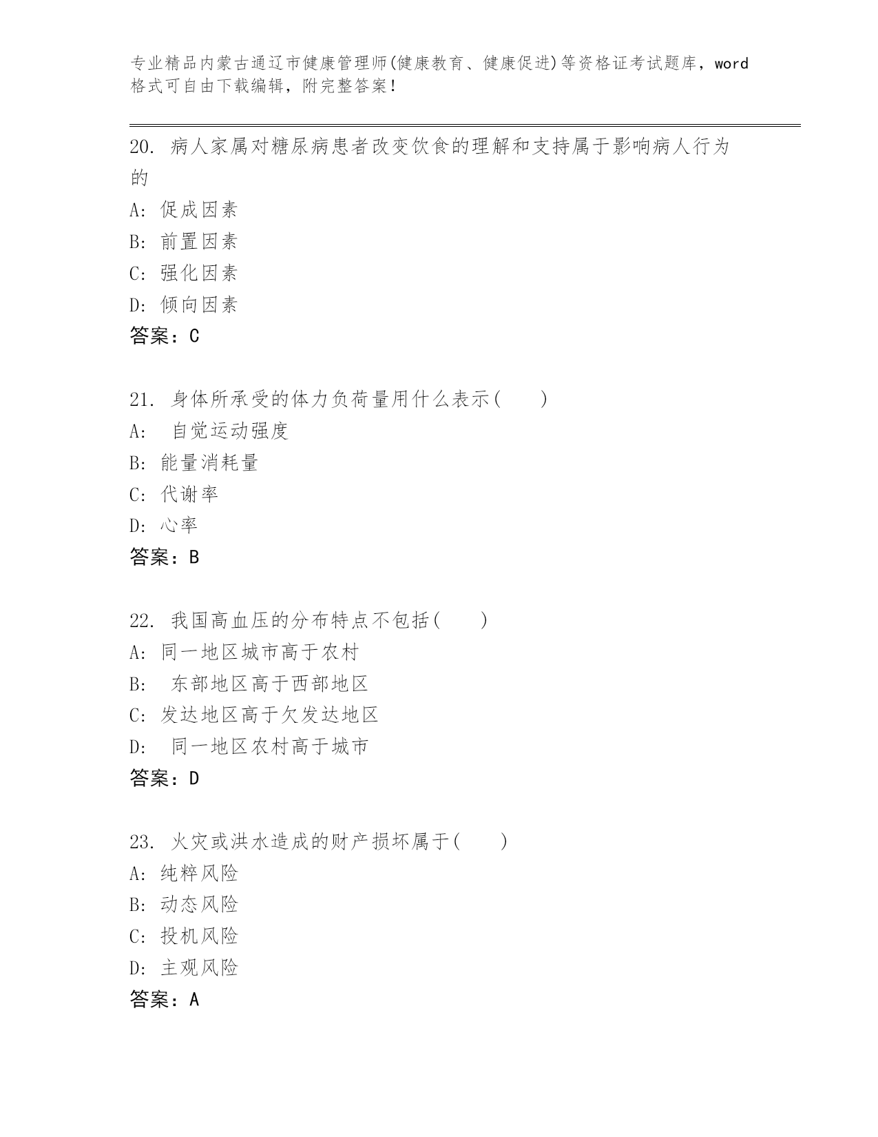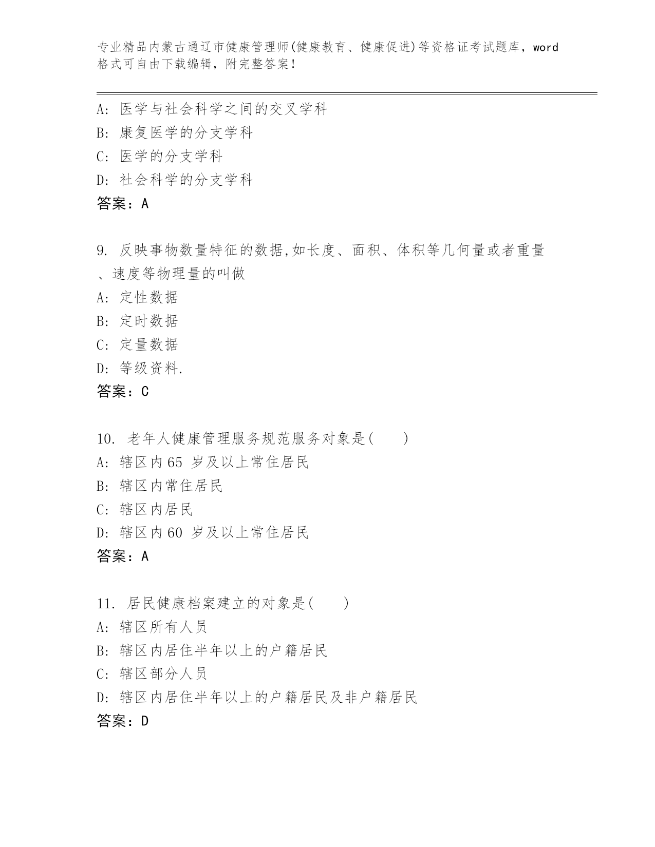 精品内蒙古通辽市健康管理师(健康教育、健康促进)等资格证考试通用题库完整答案.docx