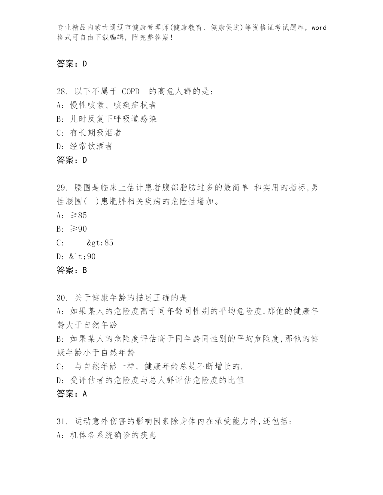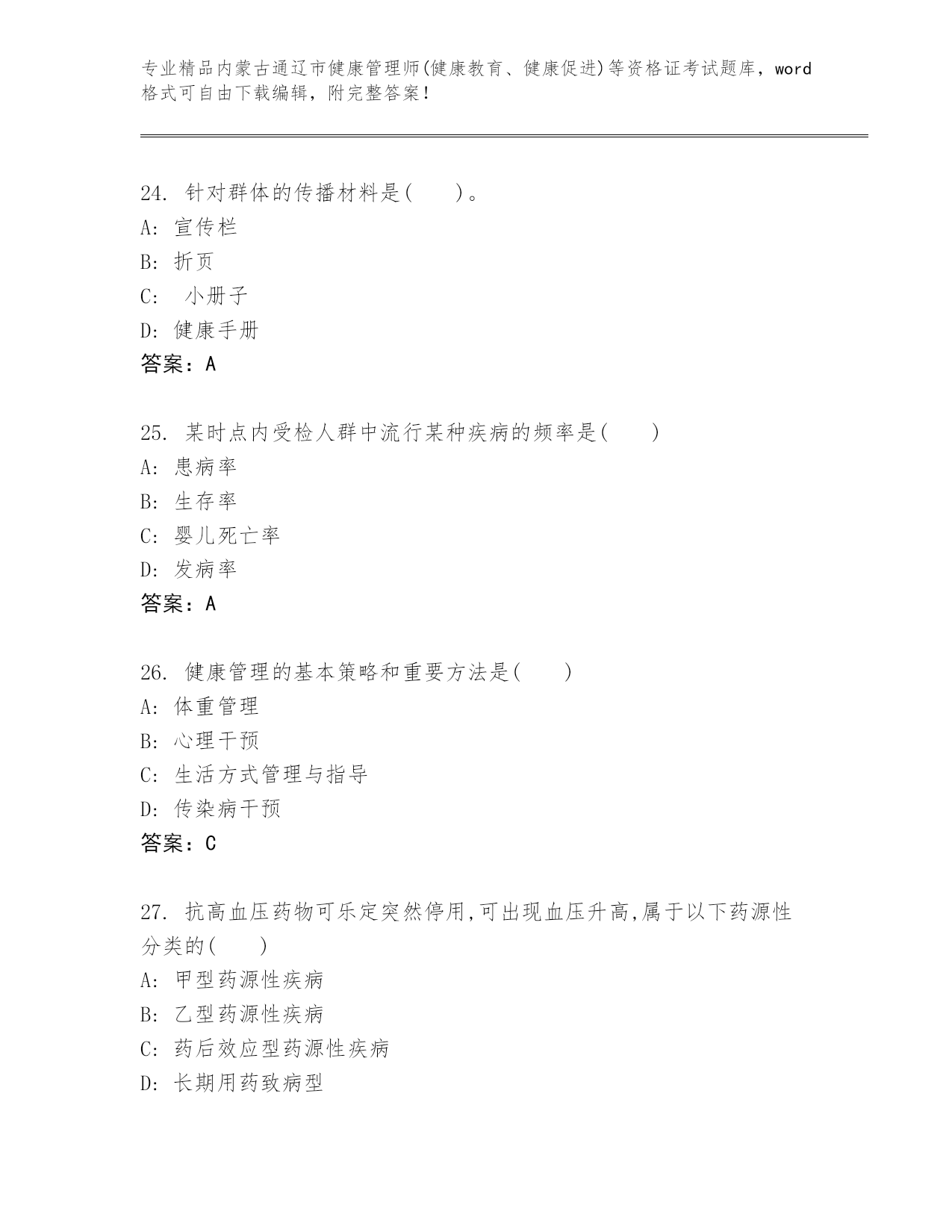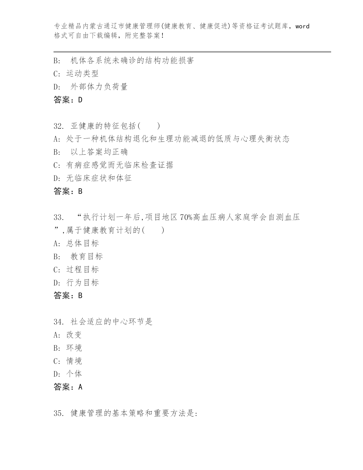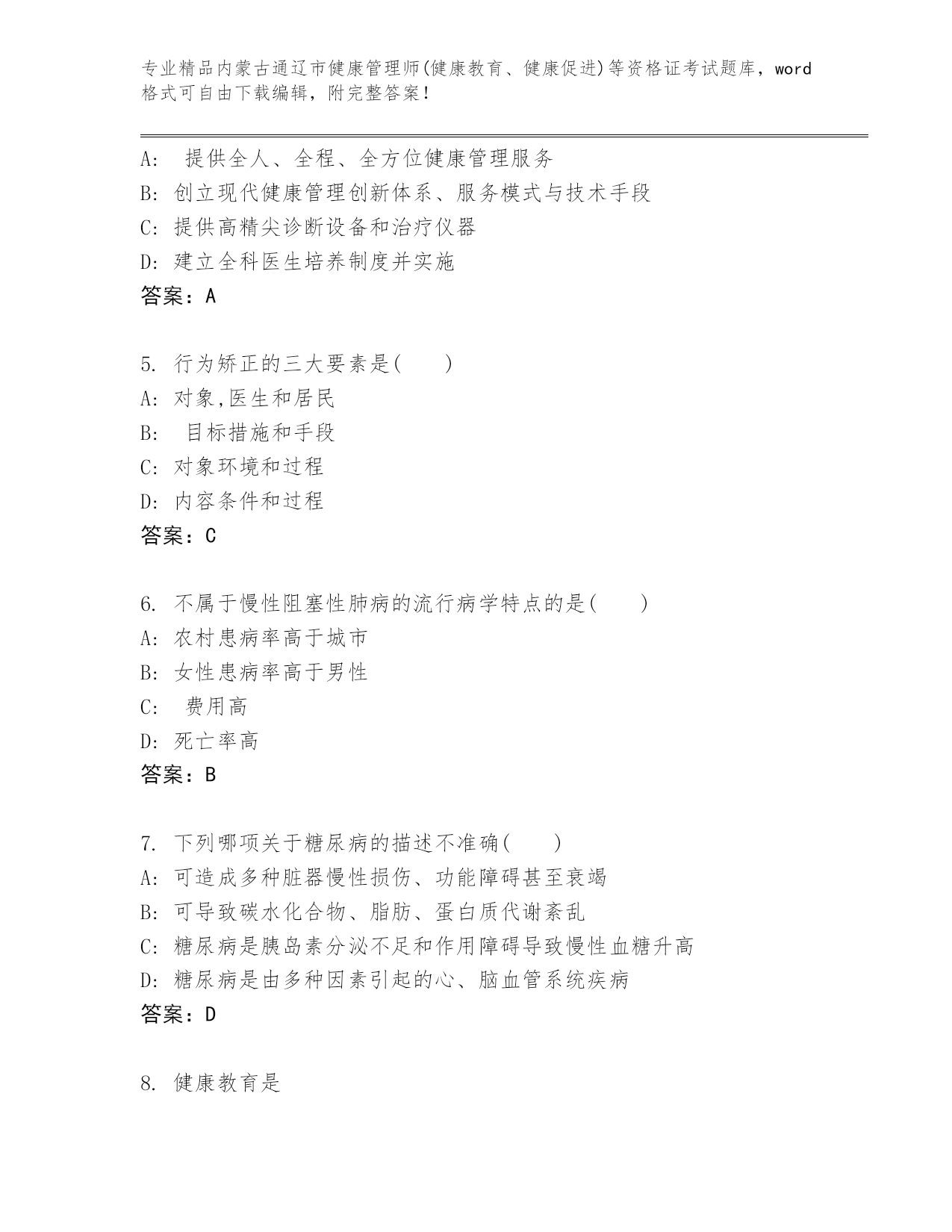 精品内蒙古通辽市健康管理师(健康教育、健康促进)等资格证考试通用题库完整答案.docx