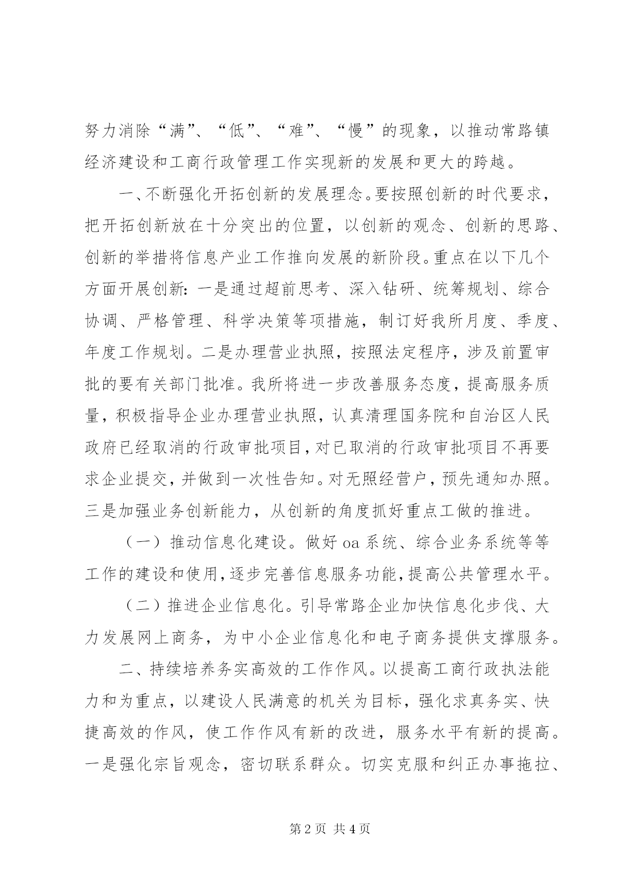 第PAGE\*Arabic\*MERGEFORMAT4页共NUMPAGES\*MERGEFORMAT4页工商局思想活动整改方案xx县工商局常路所解放思想活动整改方案据全局开展新一轮解放思想大讨论的部署安排,为接受组织和党员群众的有效监督,确保达到切实解决存在的"满、难、低、慢"等问题和不足,提高认识,增强紧迫感和责任感,不断创新思路,开拓常路工商行政管理工作新局面,现深刻剖析存在的问题和不足,并制定整改方案如下:一、存在的问题和不足一是创新意识不强,观念不新,视野不宽,因循守旧,习惯于凭老方式老办法想问题、做工作,缺乏主动性、开拓性、创造性的问题;二是竞争意识不强,小成即满,标杆不高、目标不明,缺乏勇争一流精神,习惯于纵向比较,不思进取的问题;三是机遇意识不强,发现机遇、挖掘机遇、抓住机遇、利用机遇的能力不足、等靠心理严重的问题;四是创优意识不强,工作定位不高,缺乏追求,不敢闯,不求“锦上添花”的问题。五是责任意识不强,不求有功、但求无过,工作上满足于一般要求的问题;六是学习意识不强,满足现状,松于学习、惰于学习、懈于学习,落后时代发展要求的问题。二、整改措施针对以上问题,我们将从以下五个方面入手,积极进行整改,努力消除“满”、“低”、“难”、“慢”的现象,以推动常路镇经济建设和工商行政管理工作实现新的发展和更大的跨越。一、不断强化开拓创新的发展理念。要按照创新的时代要求,把开拓创新放在十分突出的位置,以创新的观念、创新的思路、创新的举措将信息产业工作推向发展的新阶段。重点在以下几个方面开展创新:一是通过超前思考、深入钻研、统筹规划、综合协调、严格管理、科学决策等项措施,制订好我所月度、季度、年度工作规划。二是办理营业执照,按照法定程序,涉及前置审批的要有关部门批准。我所将进一步改善服务态度,提高服务质量,积极指导企业办理营业执照,认真清理国务院和自治区人民政府已经取消的行政审批项目,对已取消的行政审批项目不再要求企业提交,并做到一次性告知。对无照经营户,预先通知办照。三是加强业务创新能力,从创新的角度抓好重点工做的推进。(一)推动信息化建设。做好oa系统、综合业务系统等等工作的建设和使用,逐步完善信息服务功能,提高公共管理水平。(二)推进企业信息化。引导常路企业加快信息化步伐、大力发展网上商务,为中小企业信息化和电子商务提供支撑服务。二、持续培养务实高效的工作作风。以提高工商行政执法能力和为重点,以建设人民满意的机关为目标,强化求真务实、快捷高效的作风,使工作作风有新的改进,服务水平有新的提高。一是强化宗旨观念,密切联系群众。切实克服和纠正办事拖拉、推诿扯皮、“门难进、脸难看、话难听、事难办”等不正之风,真正深入基层、深入实际,为群众办实事,办好事,切实做到权为民所用、情为民所系、利为民所谋。二是规范工作程序,提高工作效率。要进一步抓好各项管理制度的完善和落实,按照工作职责和年度任务目标要求,认真做好各项工作。要实行严格的责任制,对每一项工作都要分解落实到人头。切实做到工作上互相补位,确保不因具体工作人员的原因影响工作,耽误前来办事人员的时间。积极推行首问负责制、政策服务、政务公开制度,公开办事程序,建立规范服务、内外监督的运行机制,提高工作水平和实效。三、永远保持与时俱进的精神状态。要时刻保持与时俱进、昂扬向上的精神状态,同时在解放思想中深化教育,不断巩固提高先进性教育的成果。一是在平凡的工作岗位上与时俱进。办好那些能够做好的事情,注意克服等待观望,上靠下推空喊口号的做法,在积极应对各种挑战中抓住机遇,把弘扬与时俱进的精神具体落实到干好每一项工作,办好每一件事情,完成好每一项具体任务上。二是全体干部职工在学习理论的同时,要养成研究和思考问题的习惯,充分发挥工作的创造性,善于发现和研究本地区、本部门实际工作中存在的影响改革和发展的重大现实问题,善于从理性的高度加以概括,能够抓住本质性、规律性的东西,提出从根本上解决问题的对策,努力提高运用理论解决实际问题的能力。发挥工作的创造性,要敢于冲破一切陈规陋习和思想观念,开拓进取,勇于探索。狠刹行业不正之风,并实行限时服务制度,切实提高办事效率。四、坚持不懈地加强学习。确立学习主题、突出学习重点,深刻领会,融会贯通,以对党、对人民、对工作高度负责任的态度来加强学习、不断夯实理论、业务知识功底。一是要进一步增强学习的主动性和自觉性,深刻认识理论对实践的指导作用,增强学习的紧迫感,克服学习不深入,浅尝辄止等现象。二是在坚持每周学习日,每个干部日常自学时间不得少于6小时。同时坚持理论联系实践,抓住一切学习机会,加强微机、业务等方面知识的学习,不断提高自己的综合素质。加强业务知识学习,提高用理论指导具体工作的能力。xx县工商局常路