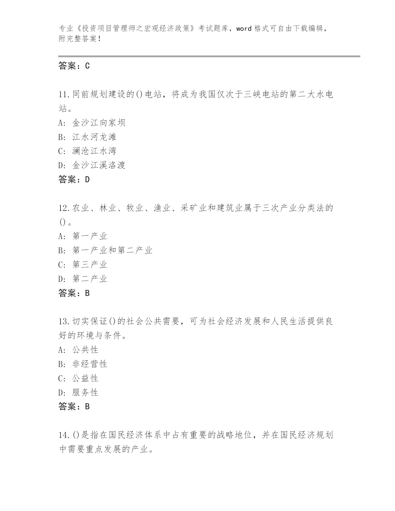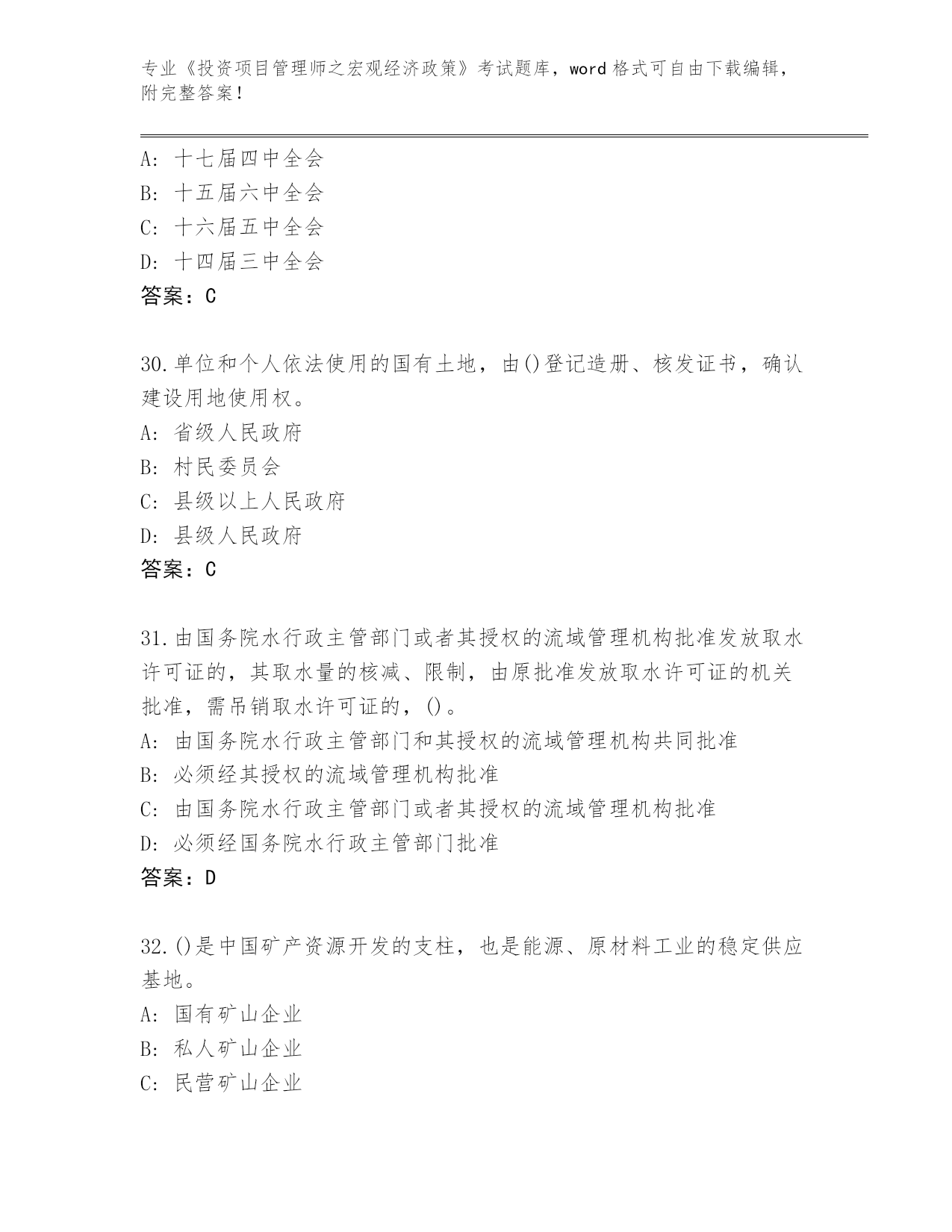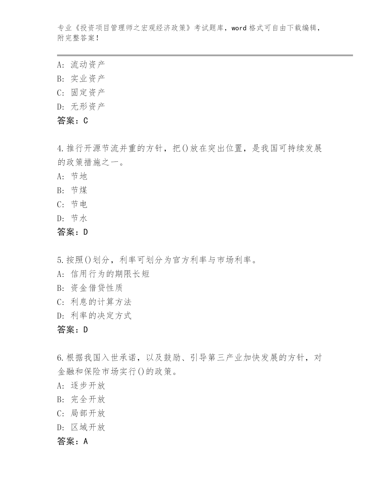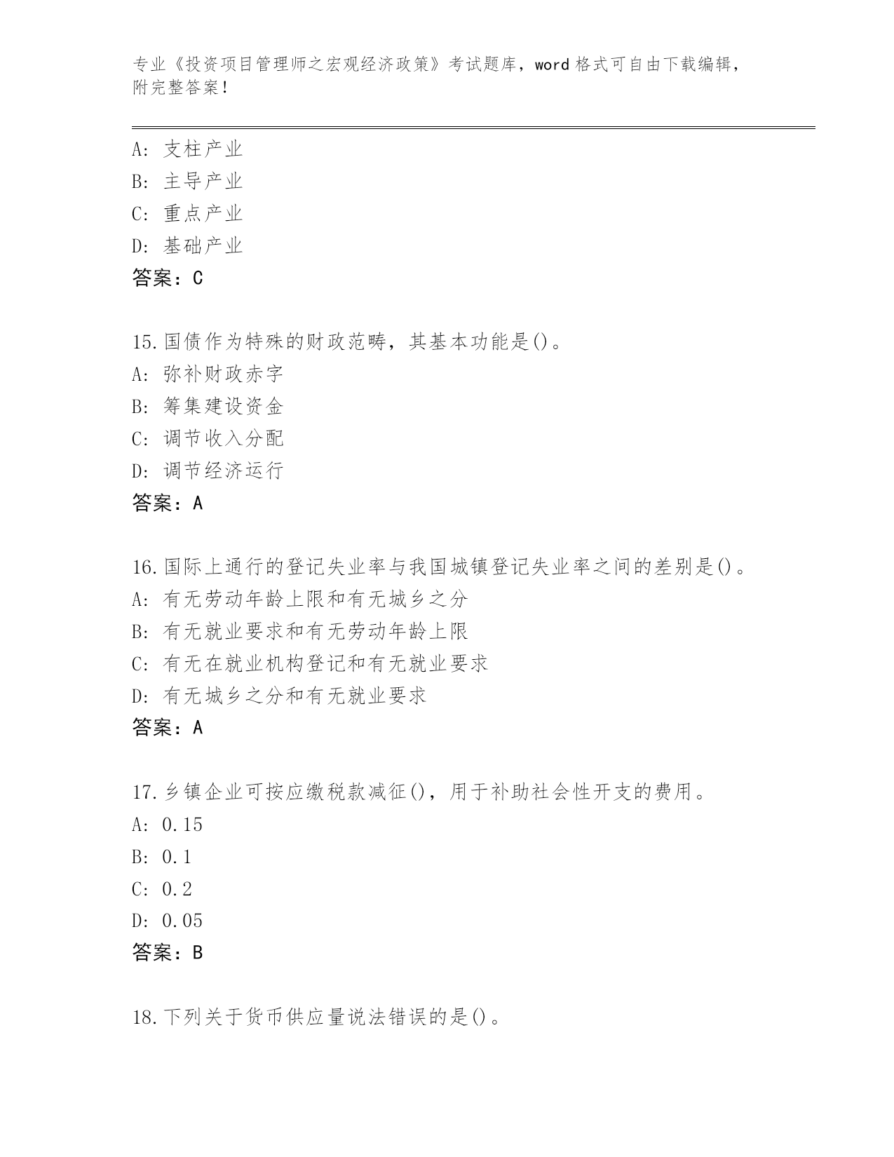 黑龙江省带岭区2024《投资项目管理师之宏观经济政策》资格考试必背200题内部题库(夺冠)
