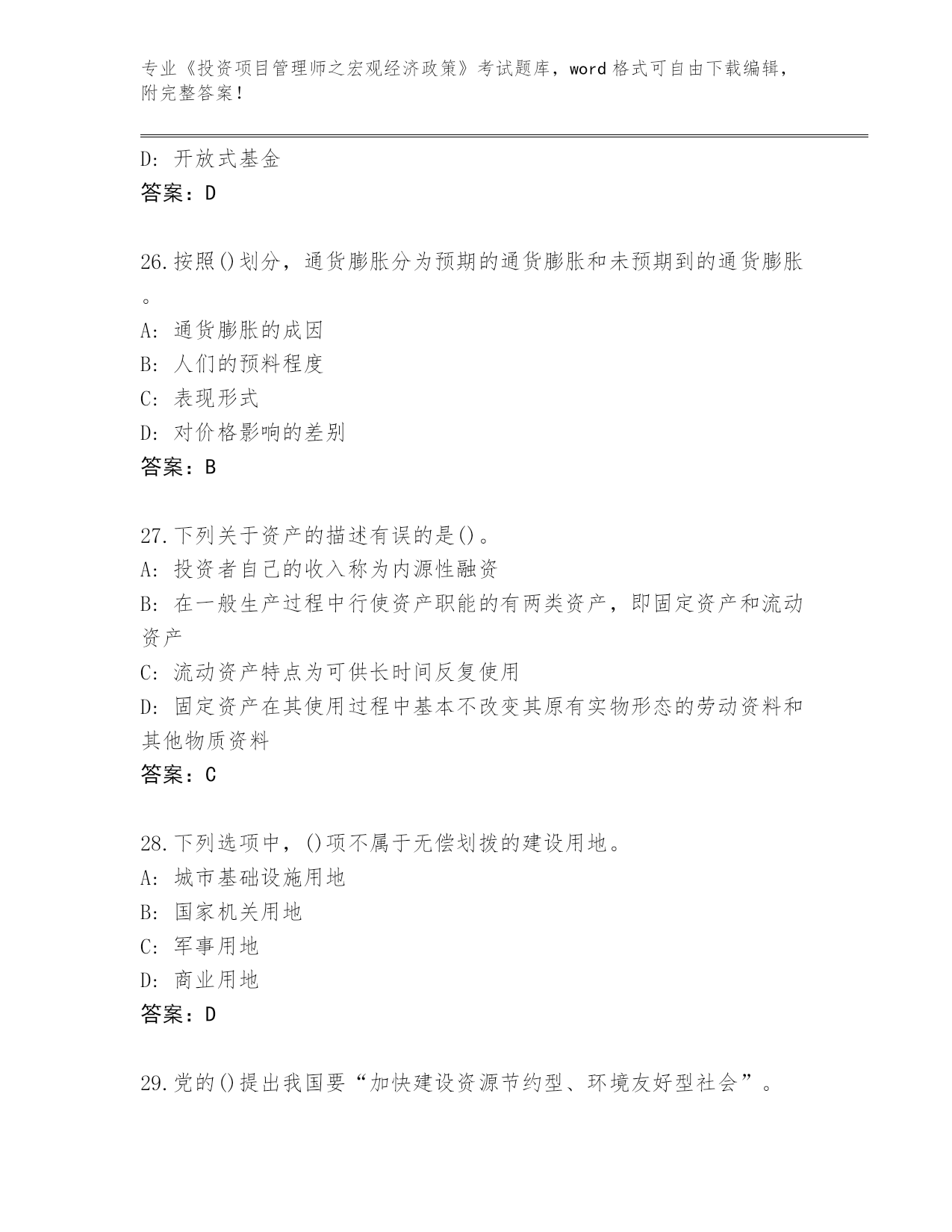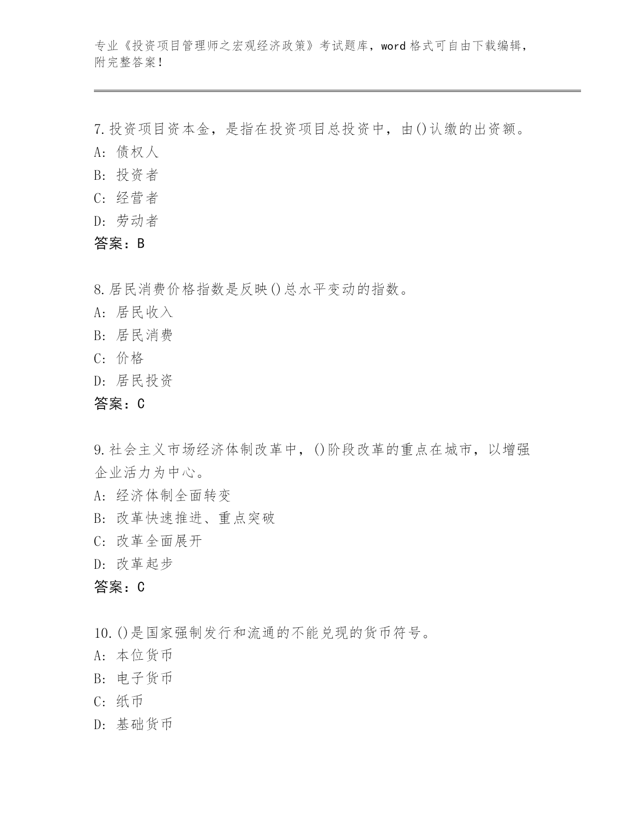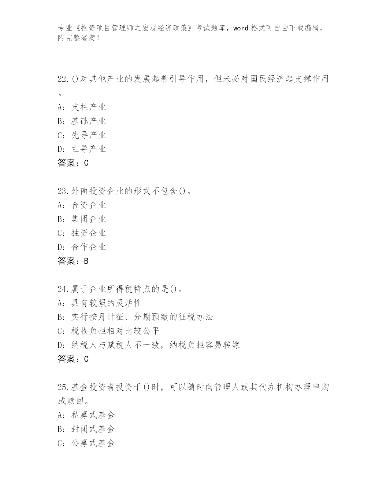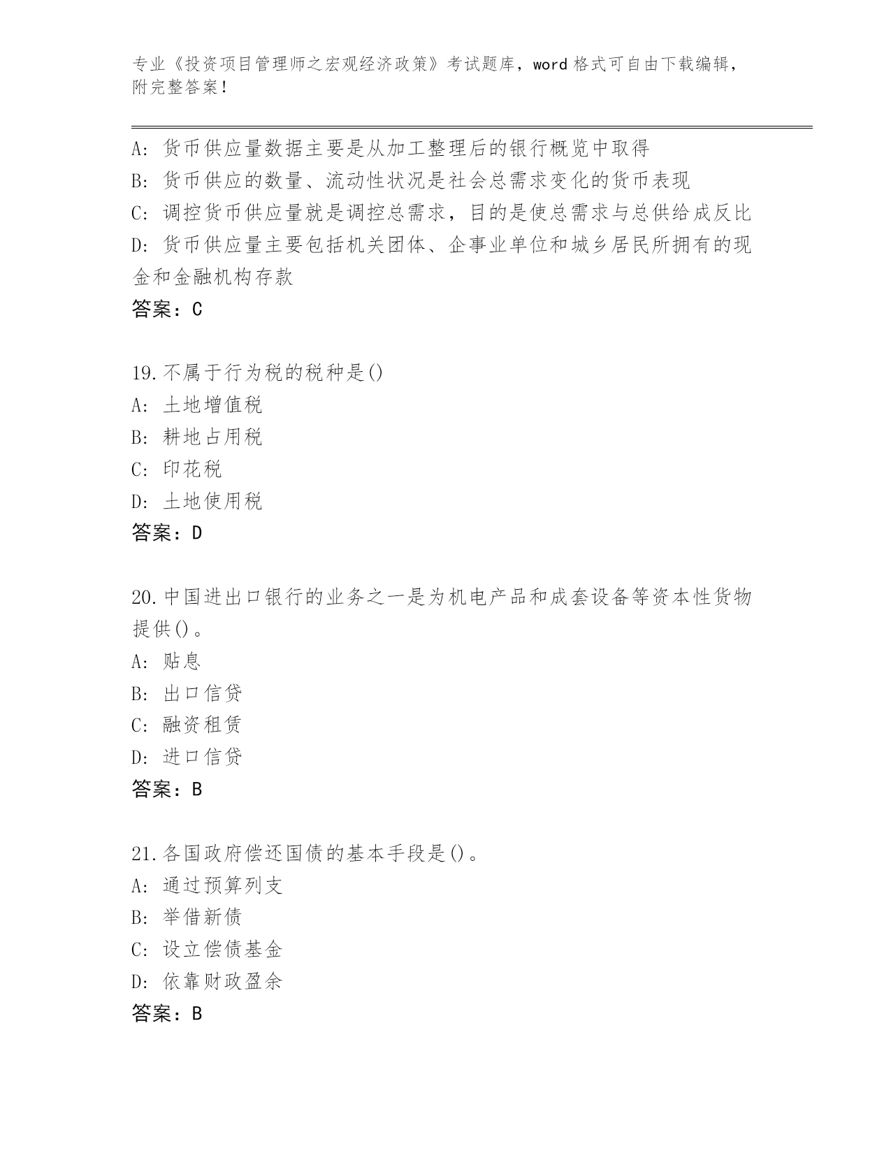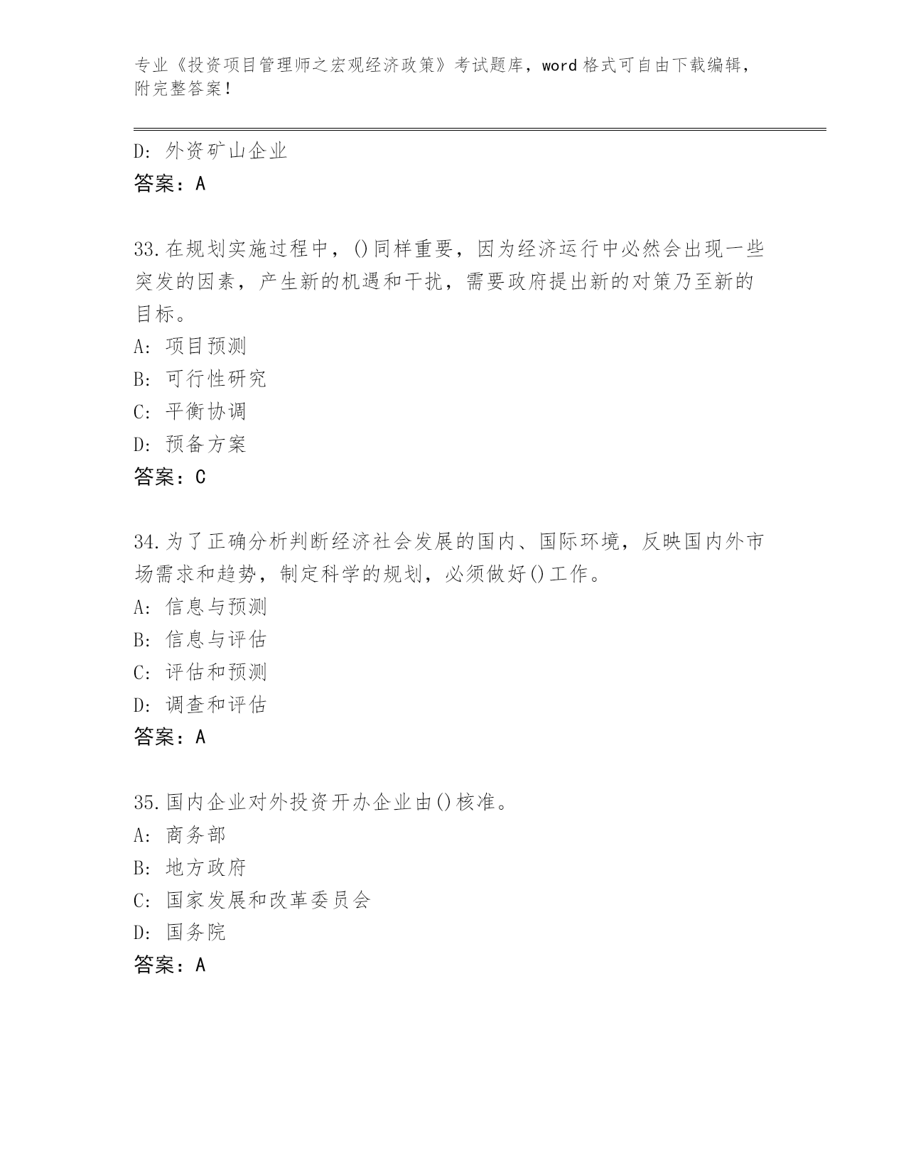 黑龙江省带岭区2024《投资项目管理师之宏观经济政策》资格考试必背200题内部题库(夺冠)