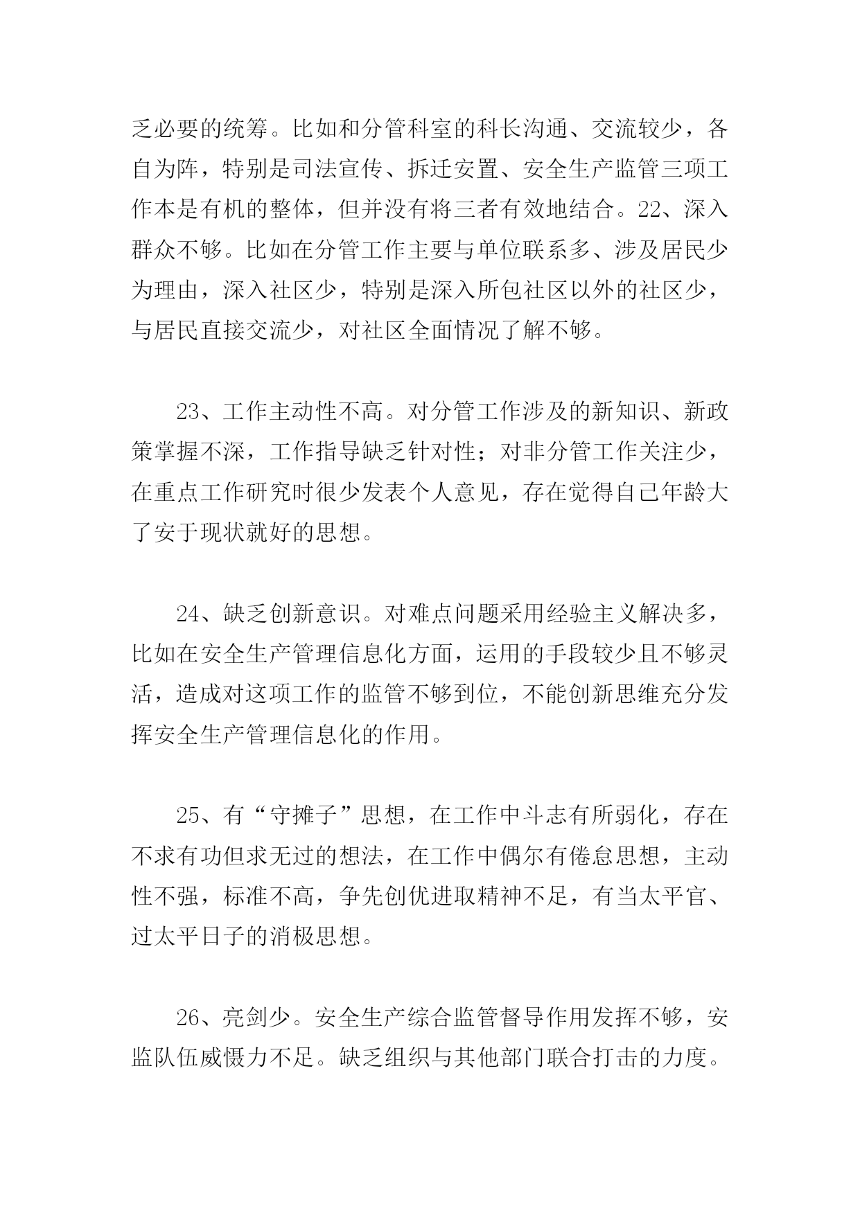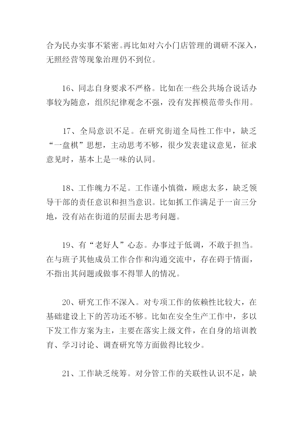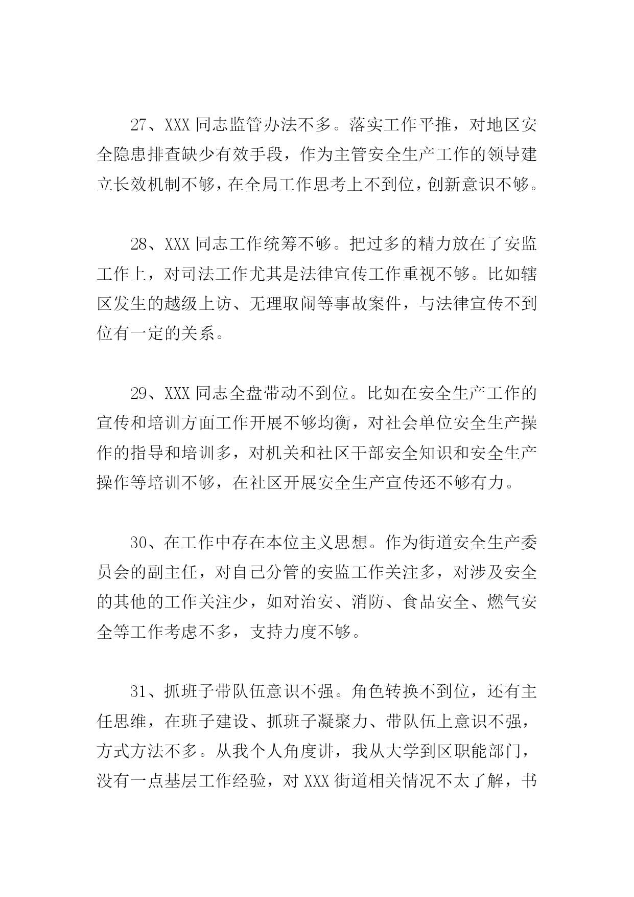 民主生活会组织生活会批评意见【十篇】第1篇:民主生活会组织生活会批评意见一、进一步提高对开好领导干部民主生活会重要性的认识党员领导干部民主生活会制度,是党内政治生活中的一项重要制度,是解决领导班子自身矛盾、加强党内监督、提高领导干部思想水平和党性修养的有效途径,是建设高素质干部队伍的一项重要措施。实践证明,坚持民主生活会制度,有利于党组织对干部的严格要求、严格管理、严格监督,有利于领导干部自重、自省、自警、自励,廉洁自律,有利于统一思想、改进作风、增强团结、提高领导班子的战斗力。县以上党员领导干部在积极参加所在党支部、党小组的组织生活会的同时,要认真参加领导班子民主生活会,自觉接受党组织和群众的监督,经受党内生活的锻炼,努力使自己成为新时期合格的领导干部。二、明确民主生活会的目的要求,充分做好会前的准备工作民主生活会不同于一般的工作会、总结会,应以讲学习、讲政治、讲正气,增强党性锻炼为重点,按照“三严”“四自”的要求,围绕学习、思想、作风、廉洁自律、遵纪守法等方面的问题汇报思想状况,进行对照检查,开展批评和自我批评。不能把民主生活会开成研究工作的会议,不能回避矛盾,脱离实际空泛议论。根据实际需要每次会议应重点解决一两个突出问题或召开专题民主生活会。民主生活会召开的时间、议题,会前应报告上级党组织。民主生活会前,应委托组织部或机关党组织广泛征求党内外群众对领导班子及其成员的意见和建议。要采取多种形式把群众的意见收集起来,并如实向主要负责同志及每个成员反馈,以便有针对性地开展批评和自我批评。上级党委、组织部门要事先有组织地收集和掌握群众和干部反映,及有关情况。对有关领导成员需要在民主生活会上说明或检查的问题,可在会前同主要领导干部或领导成员本人沟通。参加指导下级党委(党组)民主生活会的人员,根据需要可提前到会,同主要领导干部一起研究开好民主生活会的有关事项。民主生活会后,应将会议的基本情况、解决的问题、整改措施,及时报告上级党组织,必要时要向下级党组织和党员通报。三、严肃认真地开展批评和自我批评开好民主生活会,必须运用批评和自我批评的武器,开展积极的思想斗争。这是提高民主生活会质量,搞好党内监督的关键。每个领导成员都要以对党的事业、对同志高度负责的态度,严肃认真地开展批评和自我批评,分清是非,团结同志,坚持真理,修正错误。首先要进行自我批评。每个同志都要严以律己,襟怀坦白,联系自己的思想、工作实际和廉洁自律情况,认真对照检查,防止只谈工作不谈思想、只讲成绩不讲问题,只讲集体不讲个人的现象。要正视自己的缺点、不足或错误,说老实话,反映真实情况,暴露真实思想。对群众意见较多的问题,特别是廉洁自律方面的问题,更不能回避,必须如实说明,自查自纠。针对存在的问题,分析原因,吸取教训,提出改进措施。不能就事论事,不能避重就轻,不能文过饰非。四、相互批评要打破情面,讲党性、讲原则,不能迁就照顾。要克服好人主义和“事不关己,高高挂起;明知不对,少说为佳”的自由主义态度。做到坦诚相见,“知无不言,言无不尽”。被批评的同志要欢迎别人批评,虚心听取各种意见,“有则改之、无则加勉”。不能压制批评,不能打击报复批评者。五、相互批评要紧紧抓住贯彻执行党的基本路线和事关全局的重大问题,从团结的愿望出发,坚持实事求是,以理服人,不闹无原则纠纷。领导班子成员之间要交心谈心,经常交换意见,要红红脸,出出汗。第2篇:民主生活会组织生活会批评意见1、深入实际不够。对地区发展的现状和趋势认识和了解不全面,对分管工作的指导力度不够。在探索特点规律、总结经验做法、搞好服务指导等方面做得还不够好。比如在思想上不重视统计工作,认为其人事、业务均在区统计局管理,没有进行业务钻研,未能与街道整体工作进行融合没有将统计工作的成果更好地服务于本地区建设。2、统筹兼顾不到位。对窗口单位的要求尚停留在完成既定任务、不出错的层面,主要表现在工作中听分管科室汇报工作的时候多,下基层调研的时候少,对分管科室的履职情况了解不全面、不及时。缺乏系统思维,如服务大厅的硬件改造。今天西大厅漏雨就西边防水,明天东大厅漏雨就东边防水,没有未雨绸缪的意识,不能一次性发现问题,综合处理,总在事后处理。3、缺乏担当。基层工作经验方面欠缺,处理很多具体工作过程中有畏难情绪。对街道整体工作了解不多,有群众上门反映问题或采取较为激烈的方式时,办法不多,总要依靠科长解决问题。4、存在好人主义。干事激情不足,有时总当老好人,不敢过多批评干部,管理不严。比如在对窗口服务业管理上,为民服务大厅是街道最重要最集中的窗口单位,你在管理中对人员要求不严,发生一些与居民、办事人员的冲突后,客观原因找的多,主观原因找的少,批评教育不够。5、对工作的监督不到位。比如对社区劳动保障工作