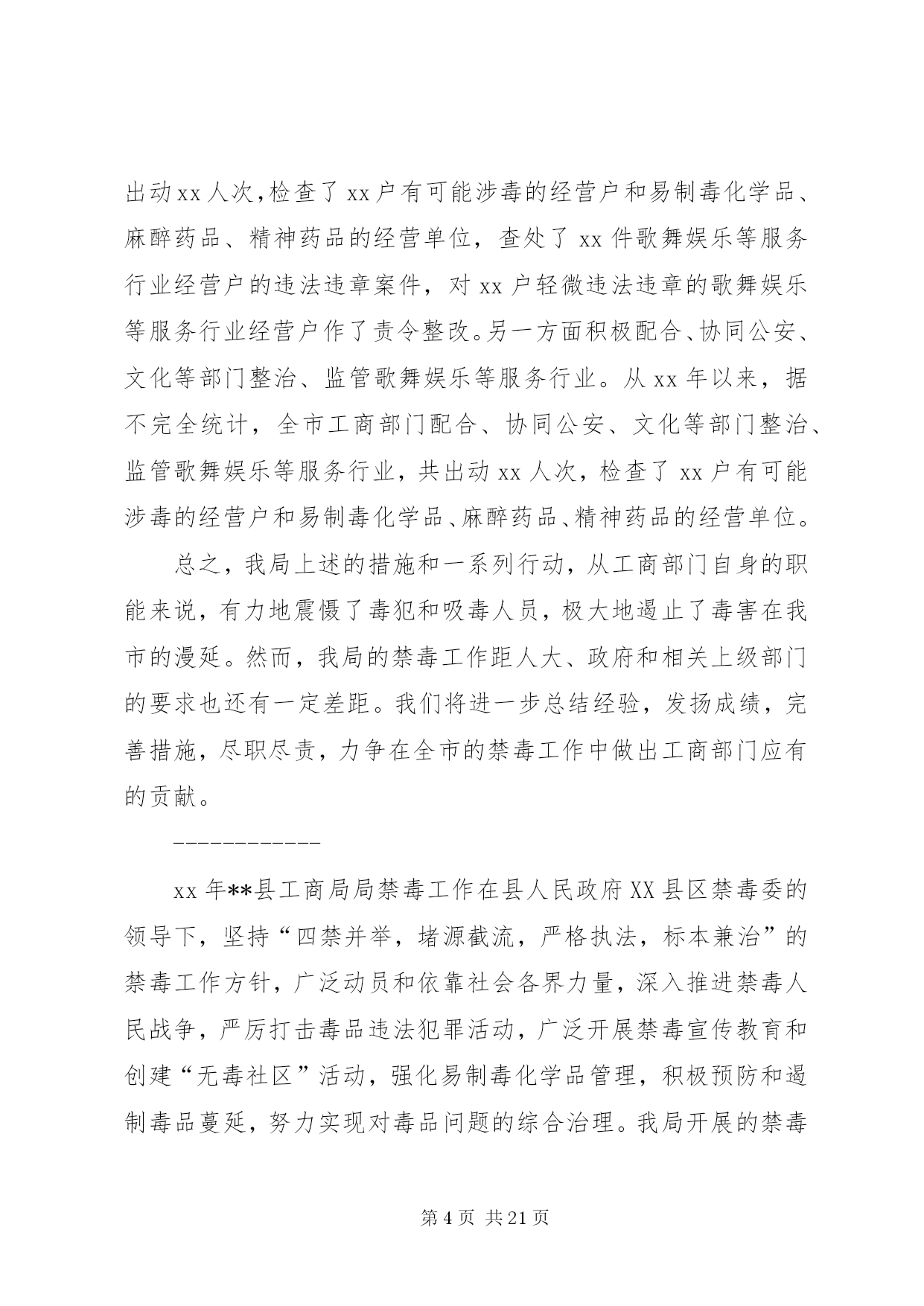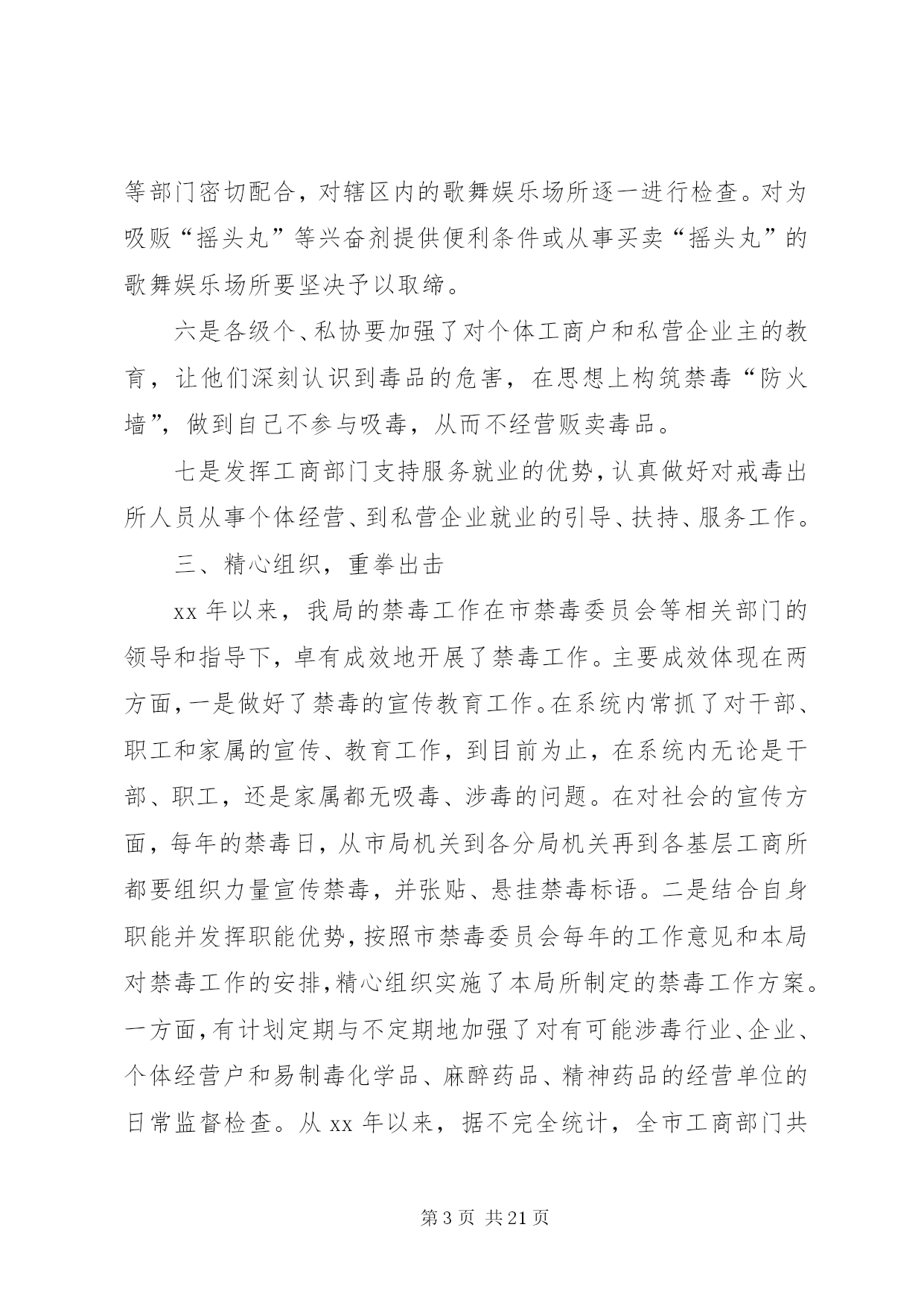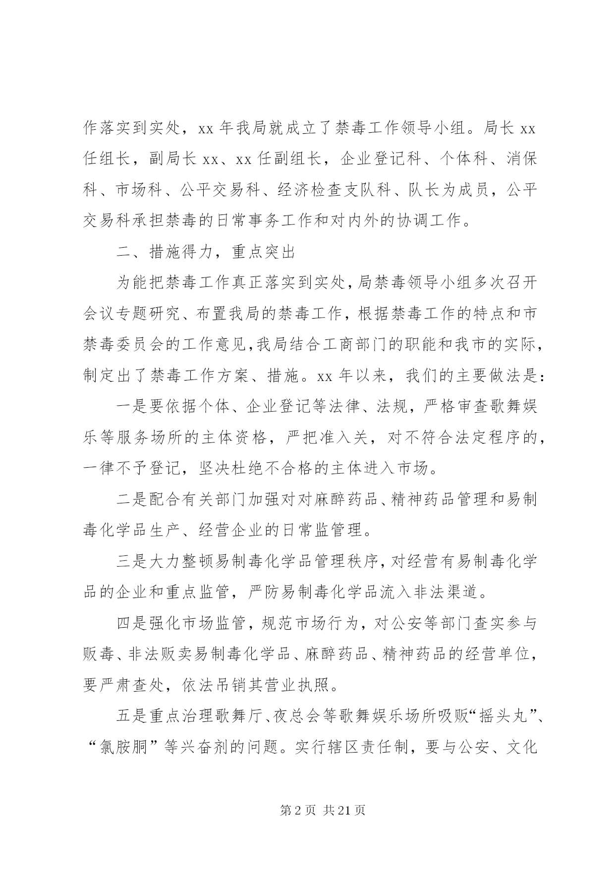 第PAGE\*Arabic\*MERGEFORMAT21页共NUMPAGES\*MERGEFORMAT21页工商自查报告4篇禁毒工作是一项长期复杂的系统工程,是关系国际民生的大事,工商行政部门在这项系统工程中责无旁贷。近几年来,我局班子充分认识到了禁毒工作重要意义,将这项工作纳入了重要议事日程,结合自身职能扎实地开展了禁毒工作。现将我局开展禁毒工作的情况向各位领导、各位委员报告如下。一、认识到位,领导落实一说禁毒,很多人认为这是公、检、法、司的事,只要自己不吸毒就行了,与工商部门没啥关系。为能从思想深处纠正这种错误认识,局长xx在局班子会上、在职工会上多次组织大家认真学习有关禁毒会议精神,深刻领会xx书记在禁毒会上的“要从加强党的执政能力建设和落实科学发展观的高度,充分认识搞好禁毒工作的重要性和紧迫性。要深刻认识坚定不移地搞好禁毒工作是汲取历史教训、防止毒品问题再度祸国殃民的正确抉择,是树立和落实科学发展观、促进经济社会全面协调可持续发展的必然要求,是对加强党的执政能力建设、提高领导水平的重大检验。”的讲话精神。教育全体干部职工要认识到“能不能打赢禁毒斗争,是对我们党执政能力的重大考验;禁毒工作能否取得成效,是衡量一个地区经济社会发展的重要标准。”反复强调本系统内干部职工不仅不能吸毒、涉毒,而且还要充分发挥职能作用,协同相关职能部门共同搞好禁毒工作。为能从组织上保障这项工作落实到实处,xx年我局就成立了禁毒工作领导小组。局长xx任组长,副局长xx、xx任副组长,企业登记科、个体科、消保科、市场科、公平交易科、经济检查支队科、队长为成员,公平交易科承担禁毒的日常事务工作和对内外的协调工作。二、措施得力,重点突出为能把禁毒工作真正落实到实处,局禁毒领导小组多次召开会议专题研究、布置我局的禁毒工作,根据禁毒工作的特点和市禁毒委员会的工作意见,我局结合工商部门的职能和我市的实际,制定出了禁毒工作方案、措施。xx年以来,我们的主要做法是:一是要依据个体、企业登记等法律、法规,严格审查歌舞娱乐等服务场所的主体资格,严把准入关,对不符合法定程序的,一律不予登记,坚决杜绝不合格的主体进入市场。二是配合有关部门加强对对麻醉药品、精神药品管理和易制毒化学品生产、经营企业的日常监管理。三是大力整顿易制毒化学品管理秩序,对经营有易制毒化学品的企业和重点监管,严防易制毒化学品流入非法渠道。四是强化市场监管,规范市场行为,对公安等部门查实参与贩毒、非法贩卖易制毒化学品、麻醉药品、精神药品的经营单位,要严肃查处,依法吊销其营业执照。五是重点治理歌舞厅、夜总会等歌舞娱乐场所吸贩“摇头丸”、“氯胺胴”等兴奋剂的问题。实行辖区责任制,要与公安、文化等部门密切配合,对辖区内的歌舞娱乐场所逐一进行检查。对为吸贩“摇头丸”等兴奋剂提供便利条件或从事买卖“摇头丸”的歌舞娱乐场所要坚决予以取缔。六是各级个、私协要加强了对个体工商户和私营企业主的教育,让他们深刻认识到毒品的危害,在思想上构筑禁毒“防火墙”,做到自己不参与吸毒,从而不经营贩卖毒品。七是发挥工商部门支持服务就业的优势,认真做好对戒毒出所人员从事个体经营、到私营企业就业的引导、扶持、服务工作。三、精心组织,重拳出击xx年以来,我局的禁毒工作在市禁毒委员会等相关部门的领导和指导下,卓有成效地开展了禁毒工作。主要成效体现在两方面,一是做好了禁毒的宣传教育工作。在系统内常抓了对干部、职工和家属的宣传、教育工作,到目前为止,在系统内无论是干部、职工,还是家属都无吸毒、涉毒的问题。在对社会的宣传方面,每年的禁毒日,从市局机关到各分局机关再到各基层工商所都要组织力量宣传禁毒,并张贴、悬挂禁毒标语。二是结合自身职能并发挥职能优势,按照市禁毒委员会每年的工作意见和本局对禁毒工作的安排,精心组织实施了本局所制定的禁毒工作方案。一方面,有计划定期与不定期地加强了对有可能涉毒行业、企业、个体经营户和易制毒化学品、麻醉药品、精神药品的经营单位的日常监督检查。从xx年以来,据不完全统计,全市工商部门共出动xx人次,检查了xx户有可能涉毒的经营户和易制毒化学品、麻醉药品、精神药品的经营单位,查处了xx件歌舞娱乐等服务行业经营户的违法违章案件,对xx户轻微违法违章的歌舞娱乐等服务行业经营户作了责令整改。另一方面积极配合、协同公安、文化等部门整治、监管歌舞娱乐等服务行业。从xx年以来,据不完全统计,全市工商部门配合、协同公安、文化等部门整治、监管歌舞娱乐等服务行业,共出动xx人次,检查了xx户有可能涉毒的经营户和易制毒化学品、麻醉药品、精神药品的经营单位。总之,我局上述的措施和一系列行动,从工商部门自身的职能来说,有力地震慑了毒犯和吸毒人员,极大地遏止了毒害在我市的漫延。然而,我局的禁毒工作距人大、政府和相关上级部门的