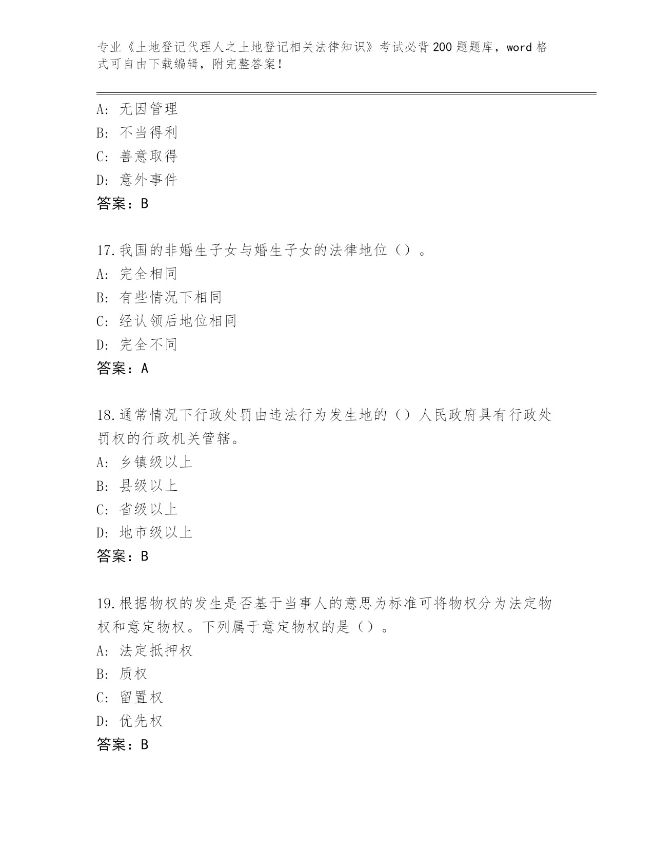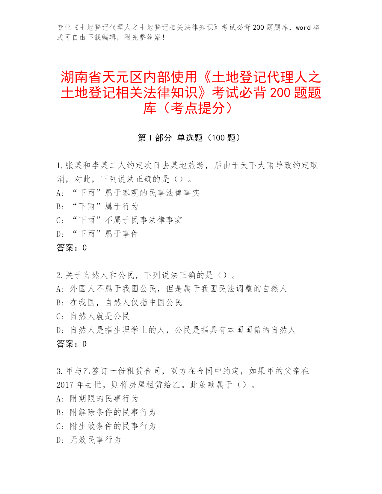 湖南省天元区内部使用《土地登记代理人之土地登记相关法律知识》考试必背200题题库(考点提分)