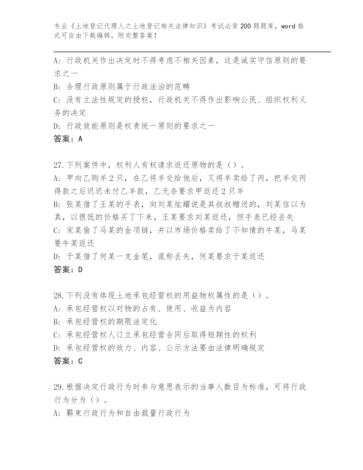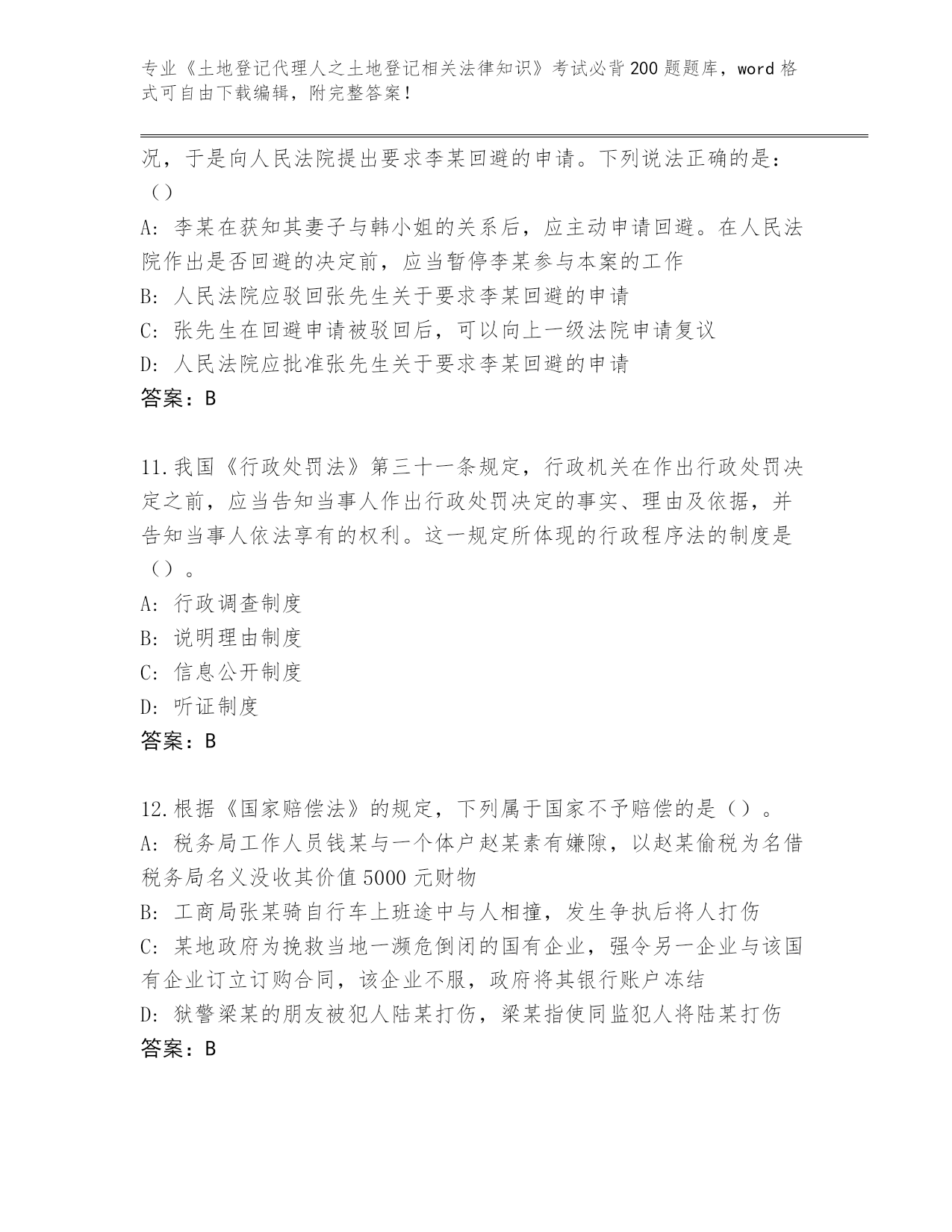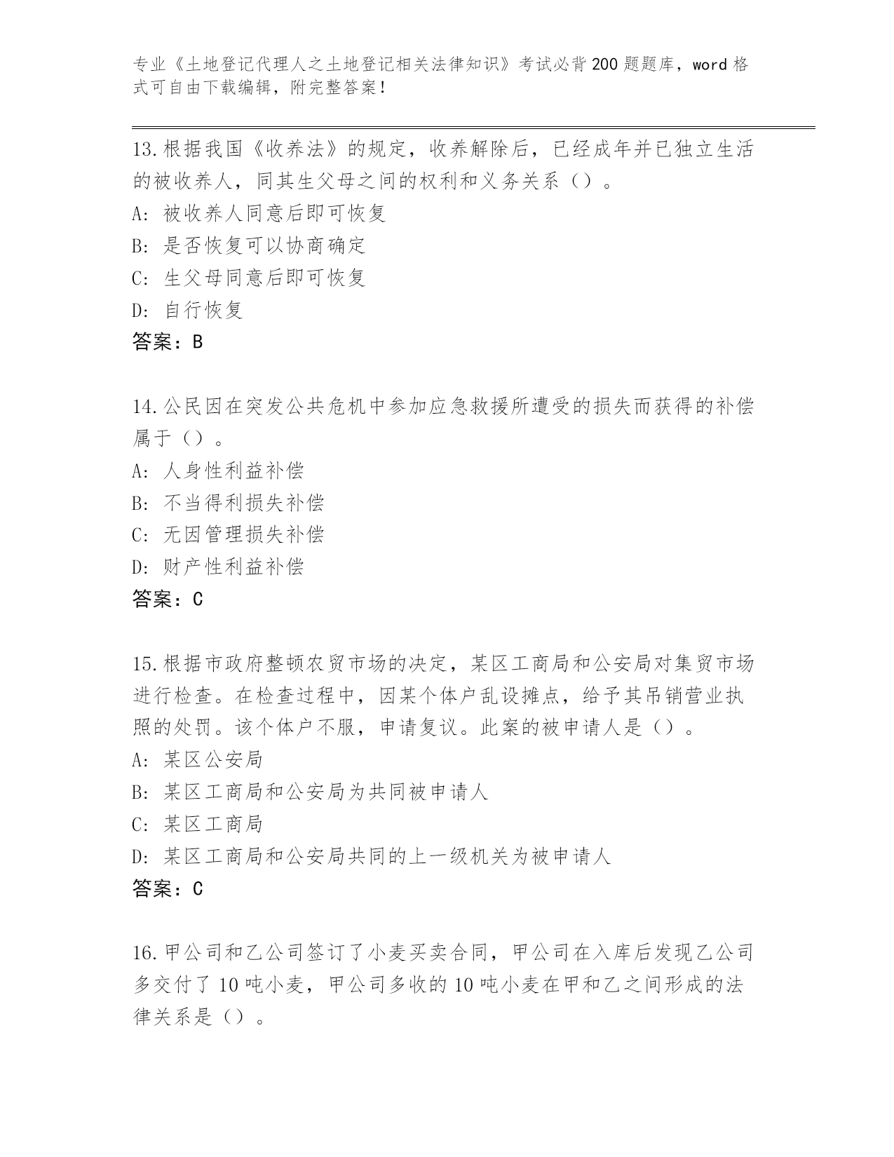 陕西省商州区2024年《土地登记代理人之土地登记相关法律知识》考试必背200题题库及答案(真题汇编)