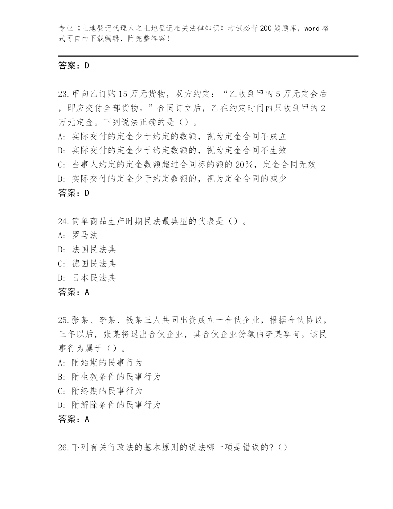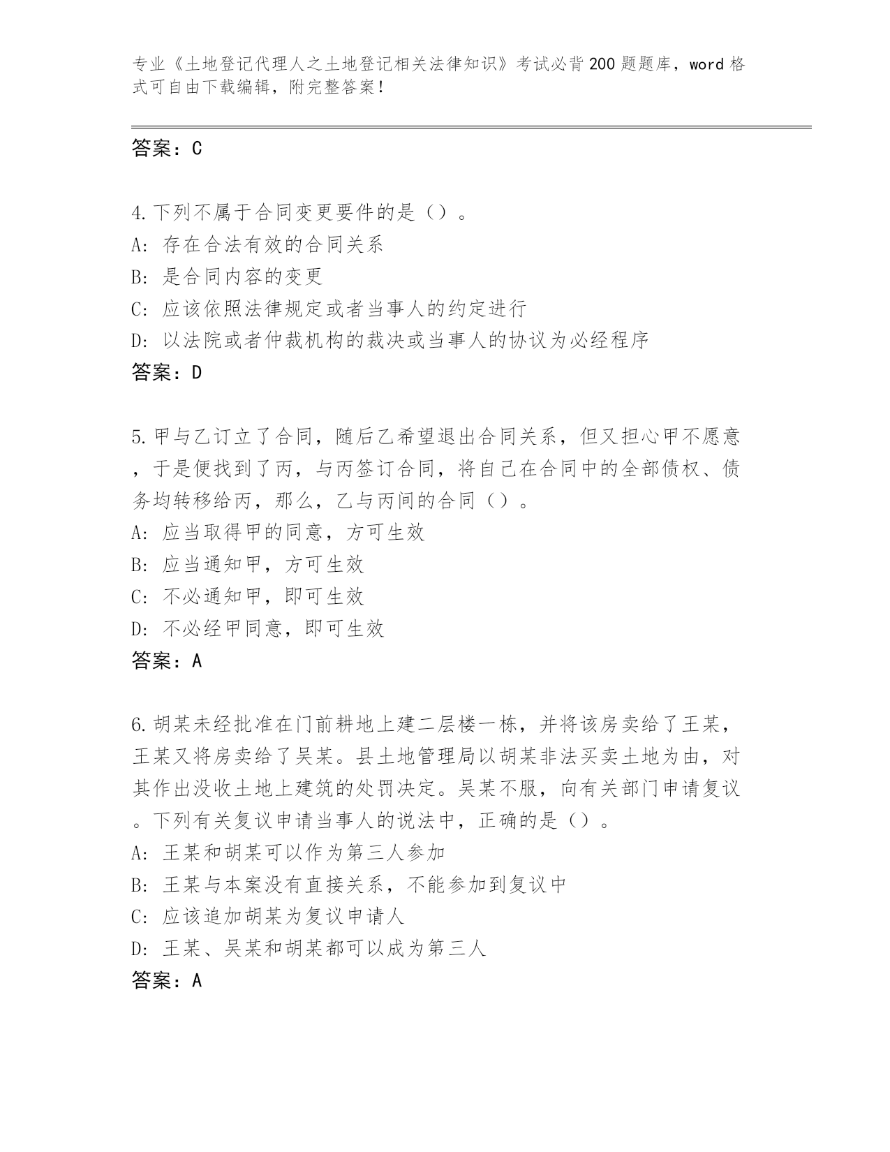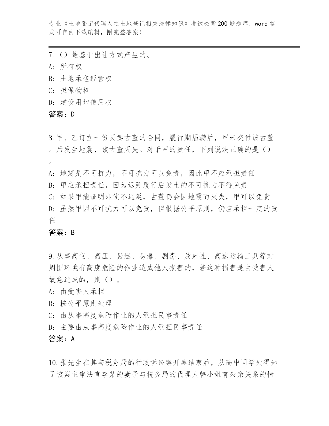 陕西省商州区2024年《土地登记代理人之土地登记相关法律知识》考试必背200题题库及答案(真题汇编)