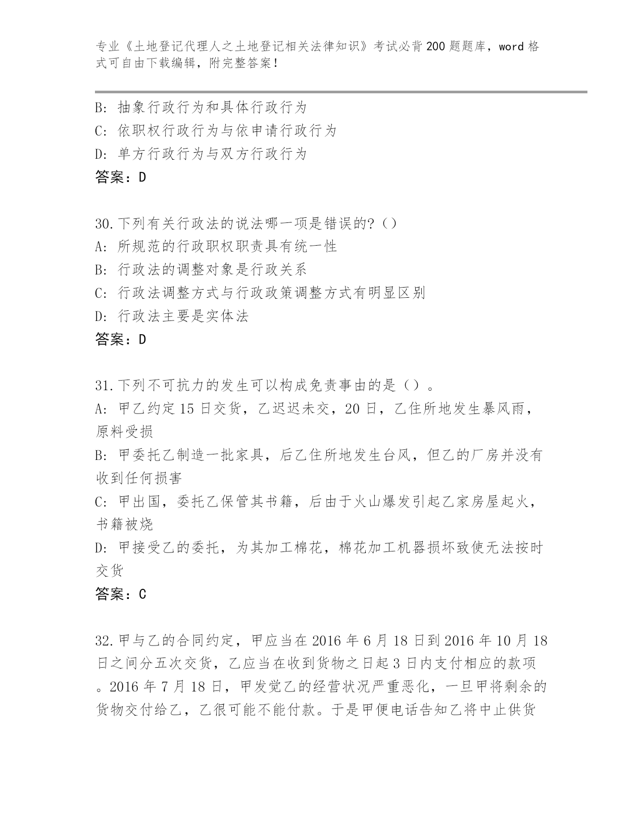 完整版河北省隆化县《土地登记代理人之土地登记相关法律知识》资格考试必背200题完整题库带解析答案