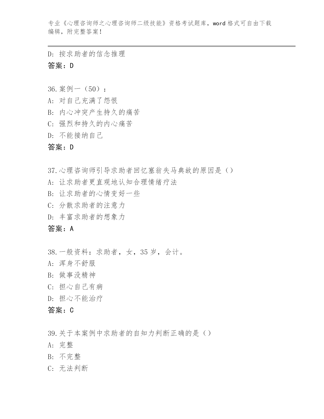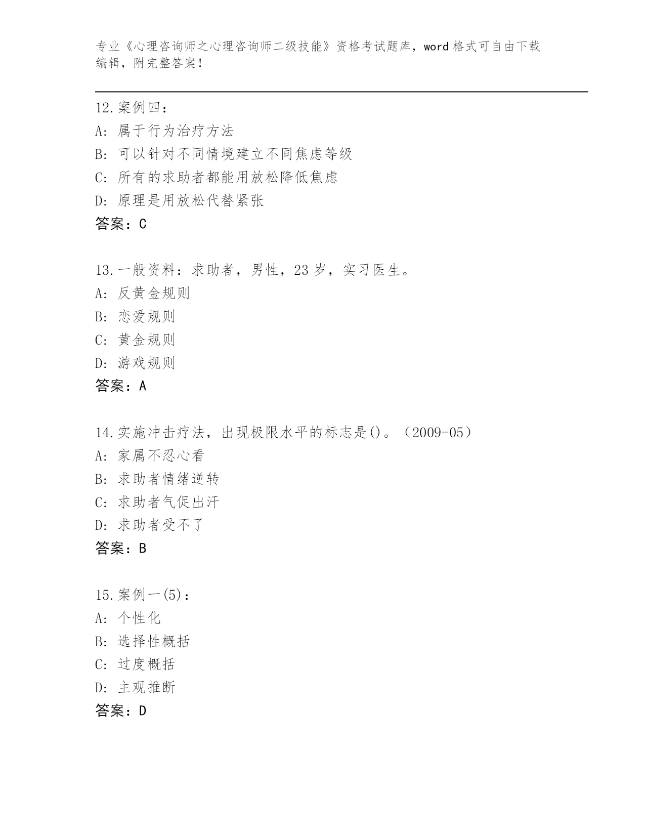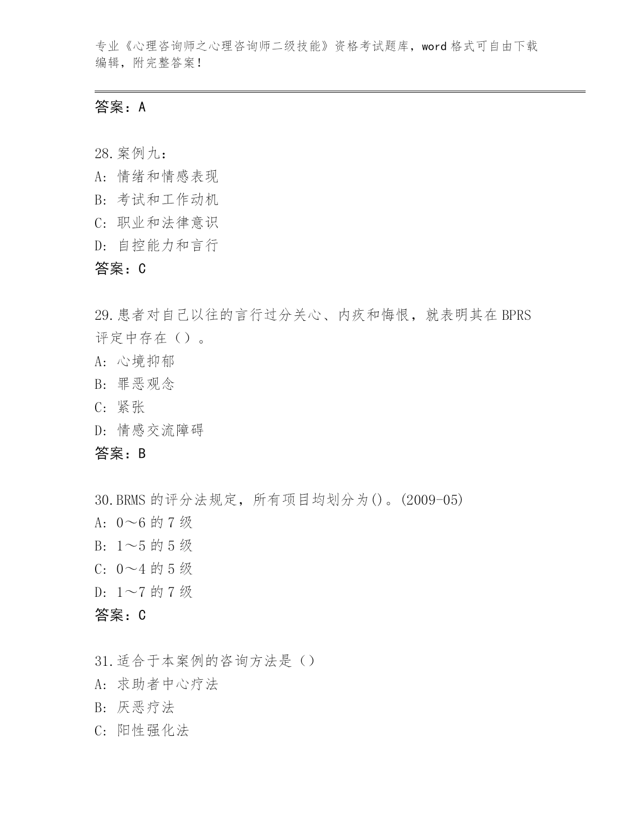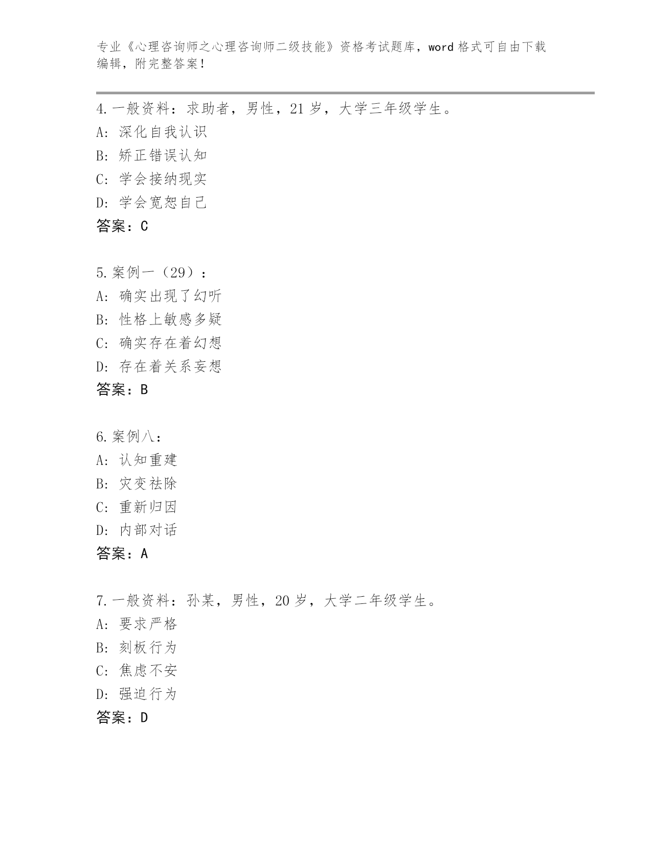 河北省雄县2024年《心理咨询师之心理咨询师二级技能》资格考试完整题库带答案(A卷)