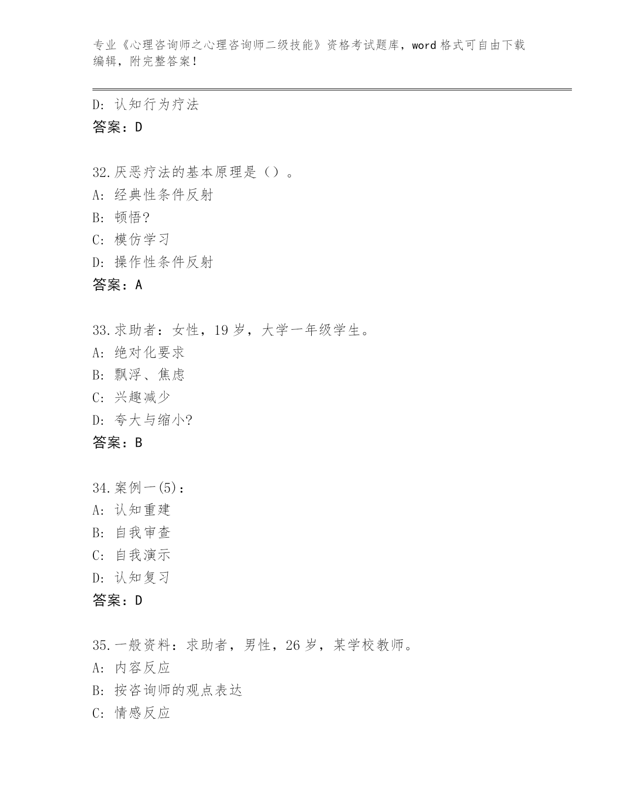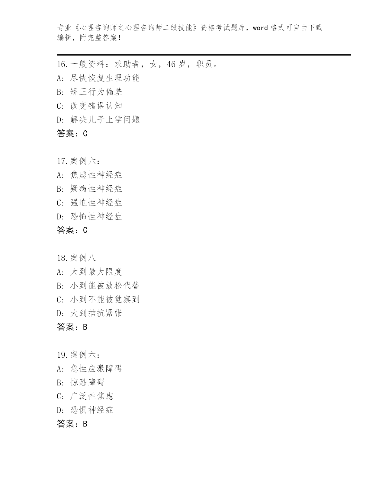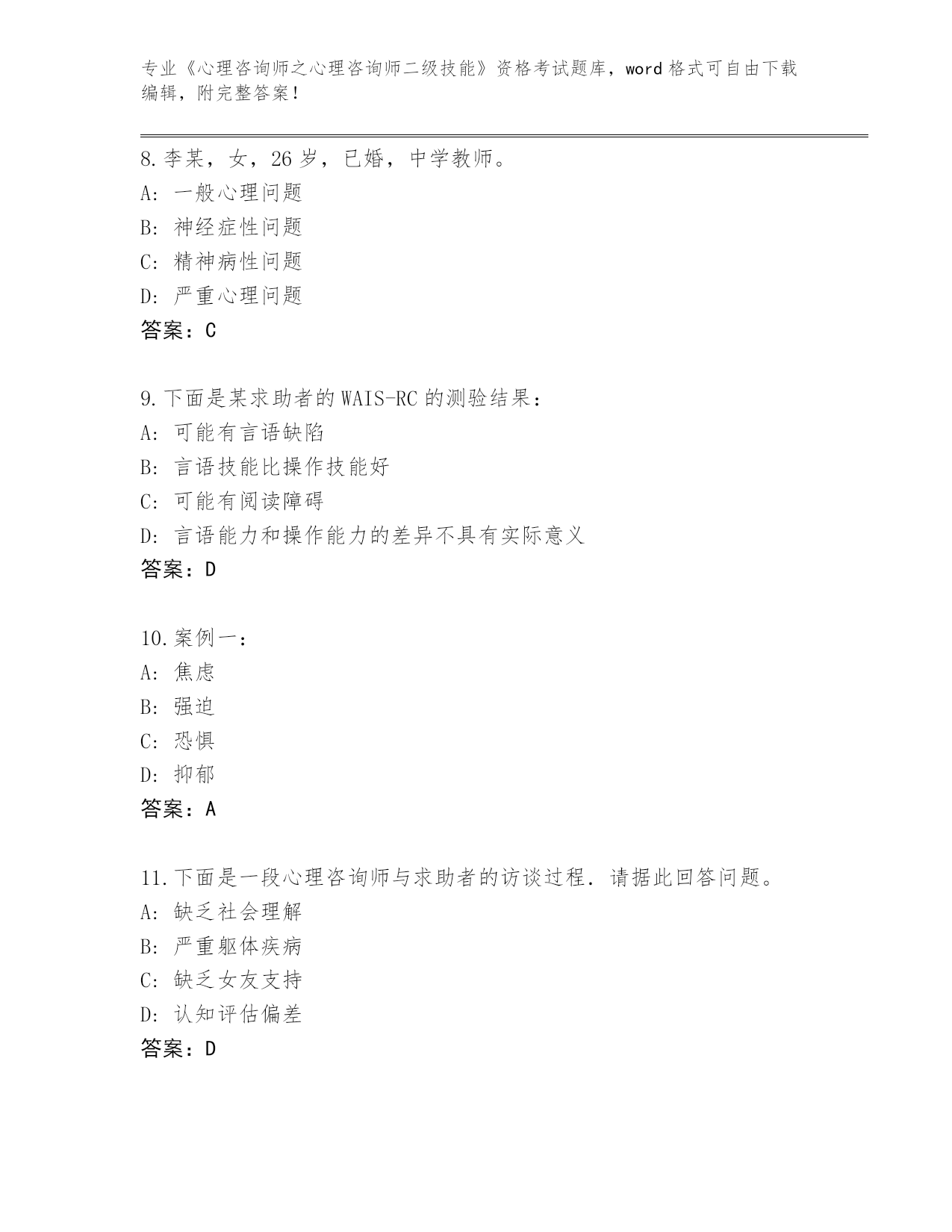 河北省雄县整理《心理咨询师之心理咨询师二级技能》资格考试题库大全及答案【最新】