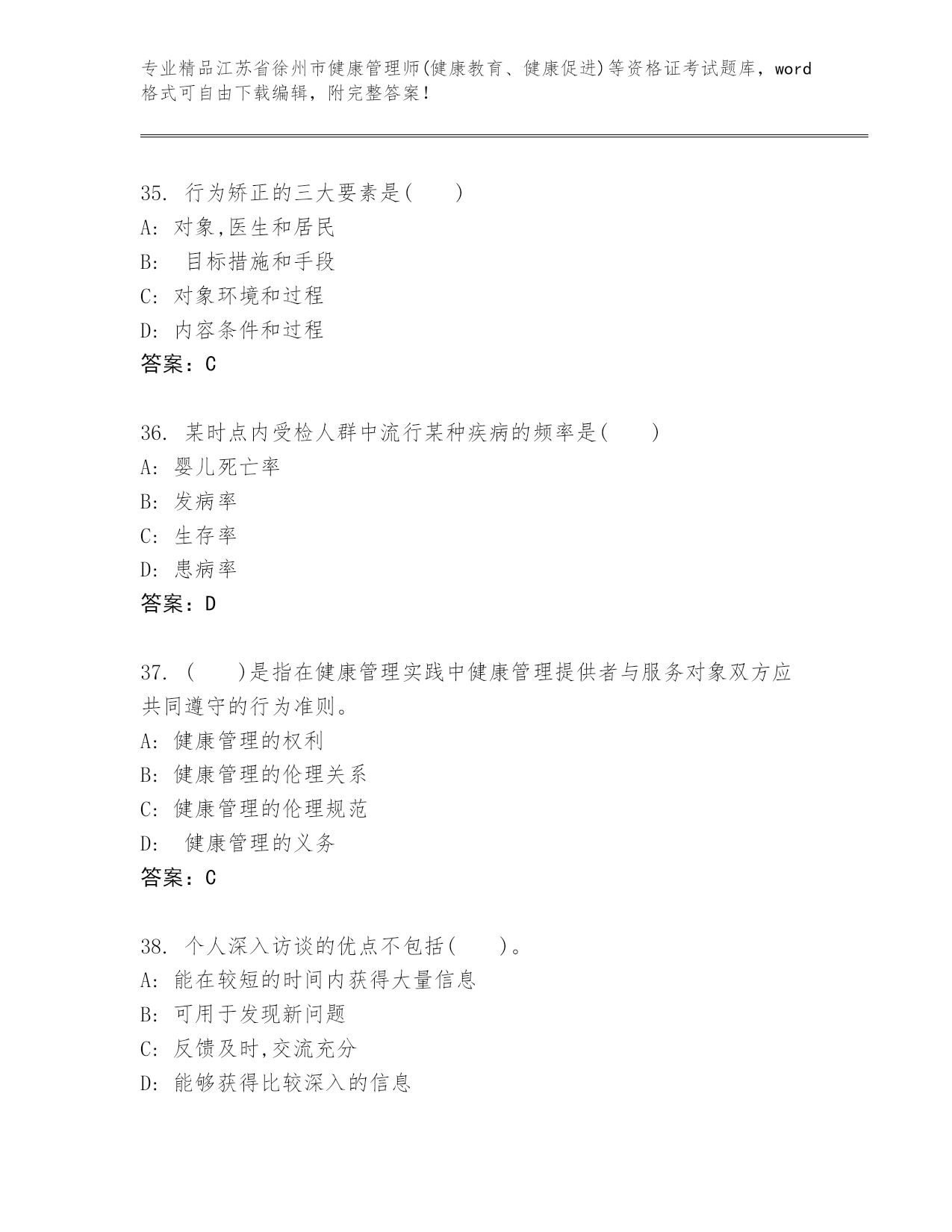 完整版江苏省徐州市健康管理师(健康教育、健康促进)等资格证考试真题最新
