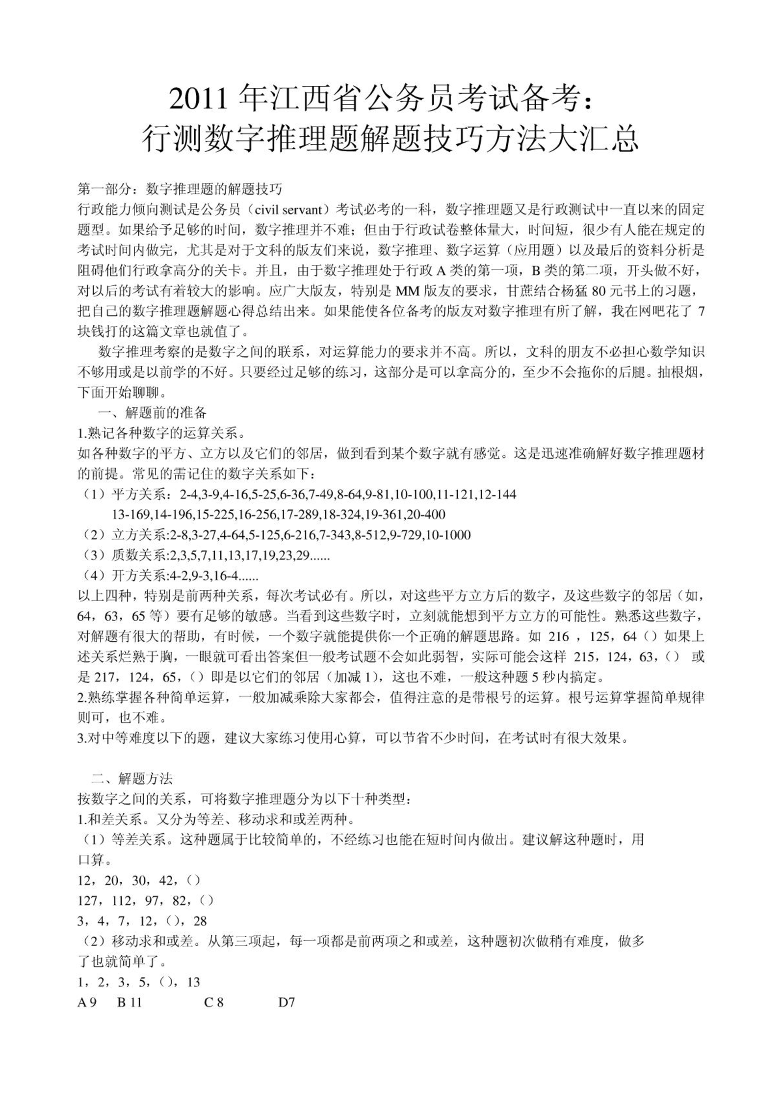 2011年江西省公务员考试备考:行测数字推理题解题技巧方法大汇总.pdf