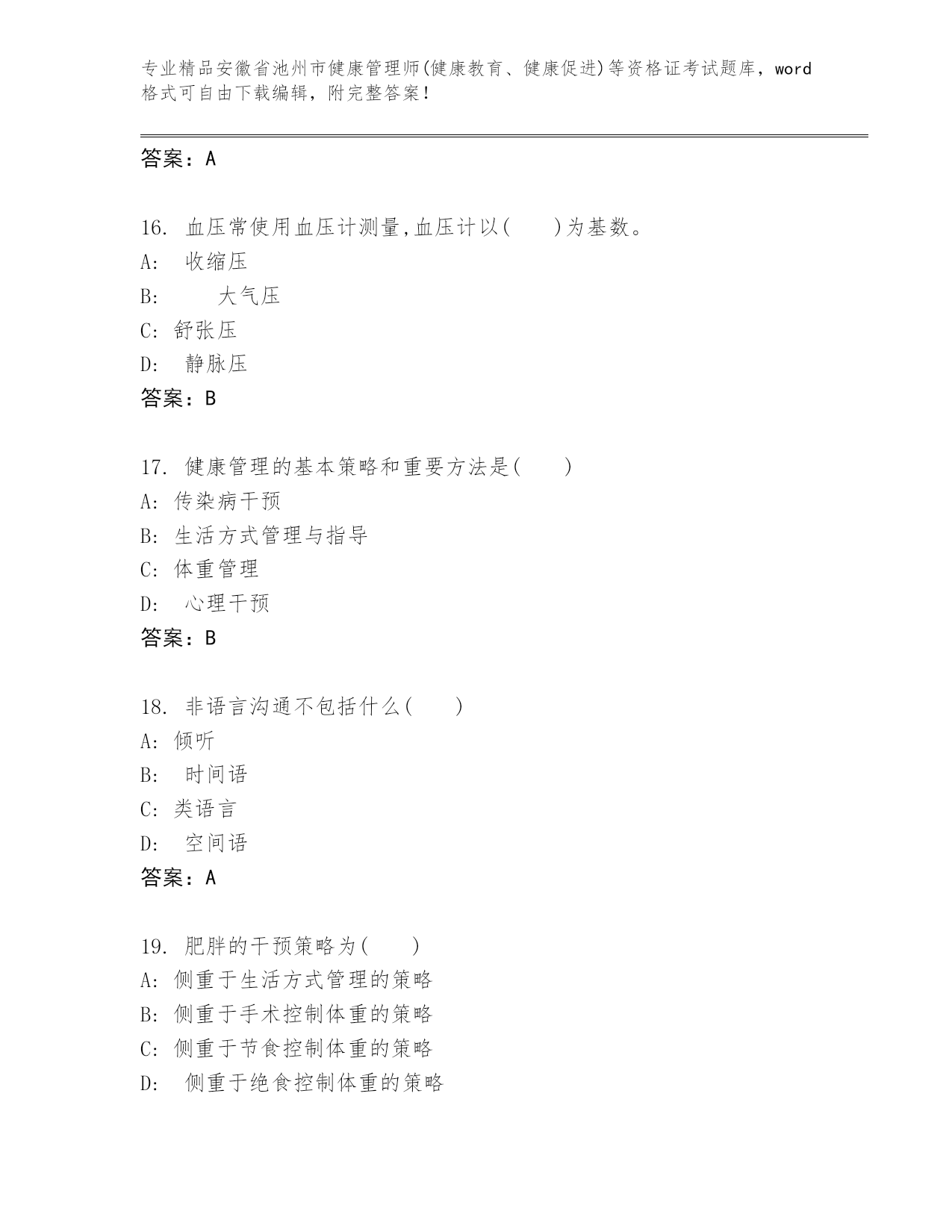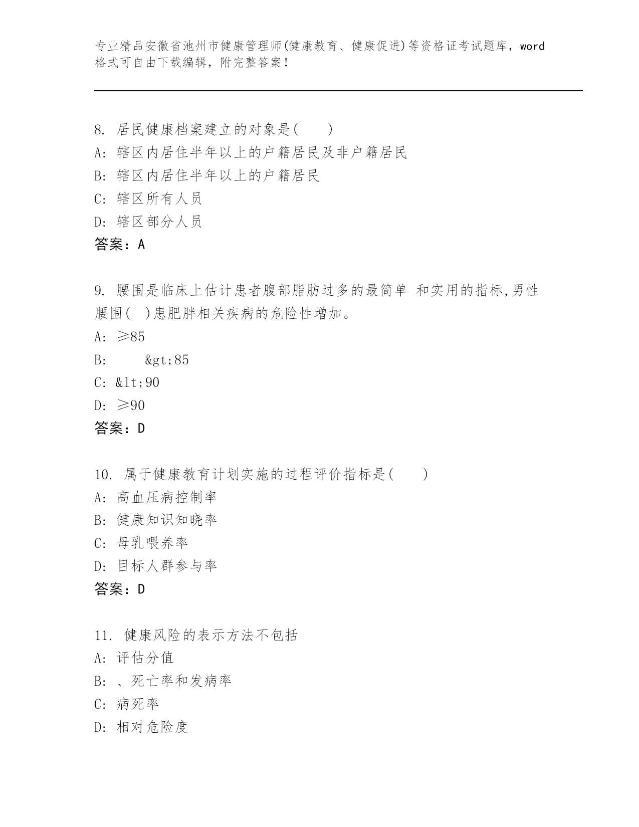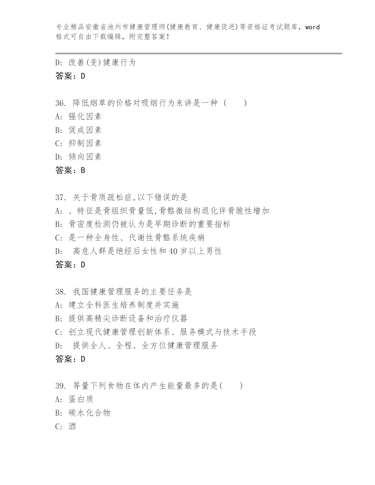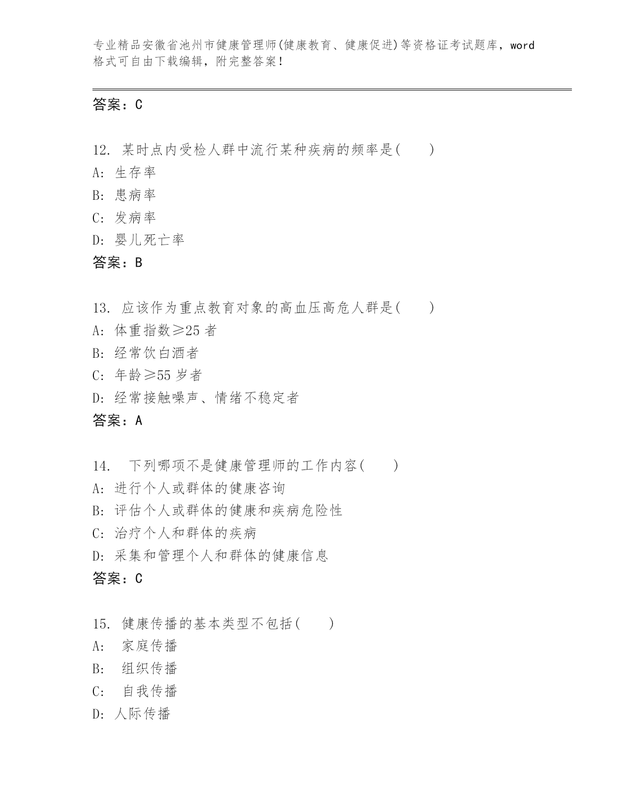 最新安徽省池州市健康管理师(健康教育、健康促进)等资格证考试大全(培优).docx