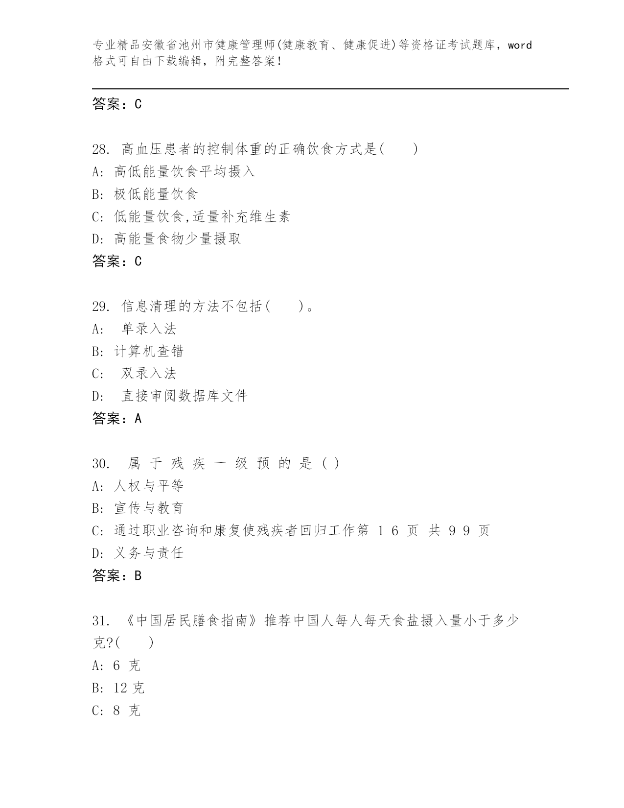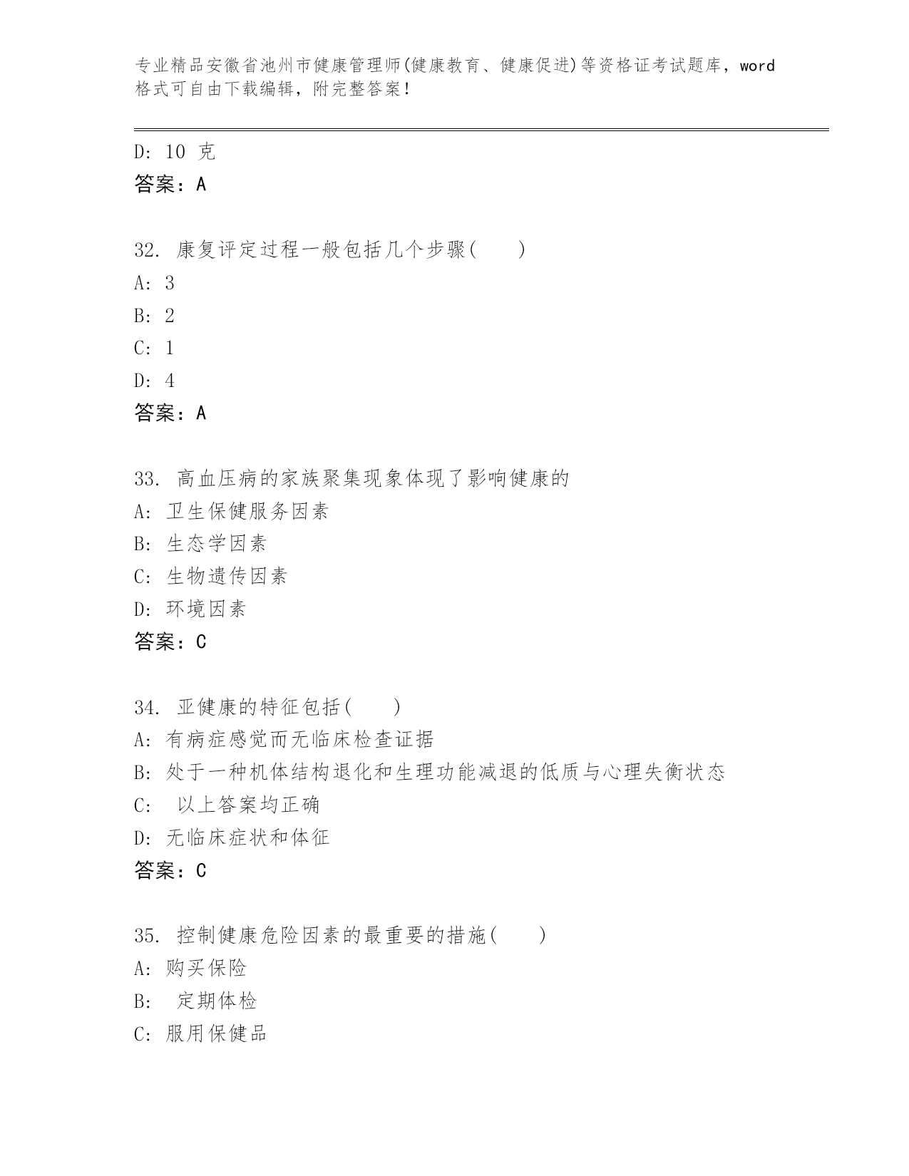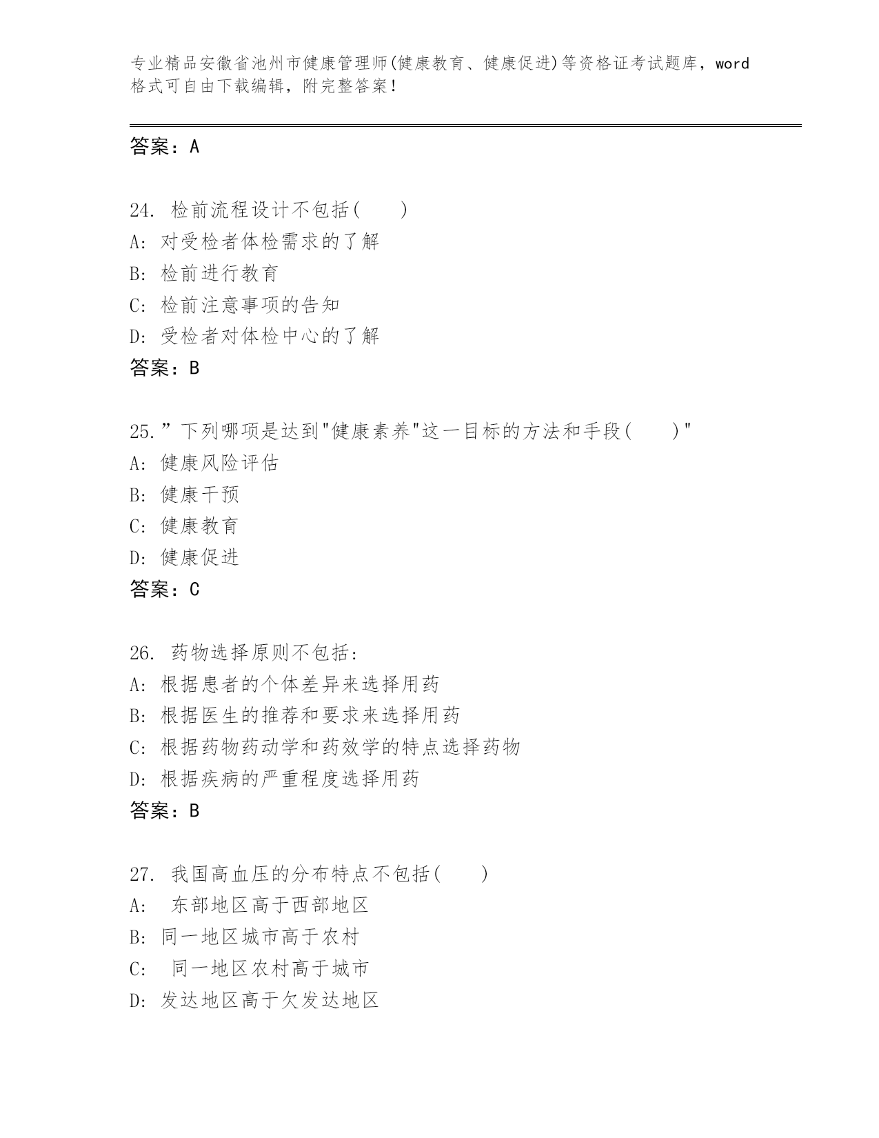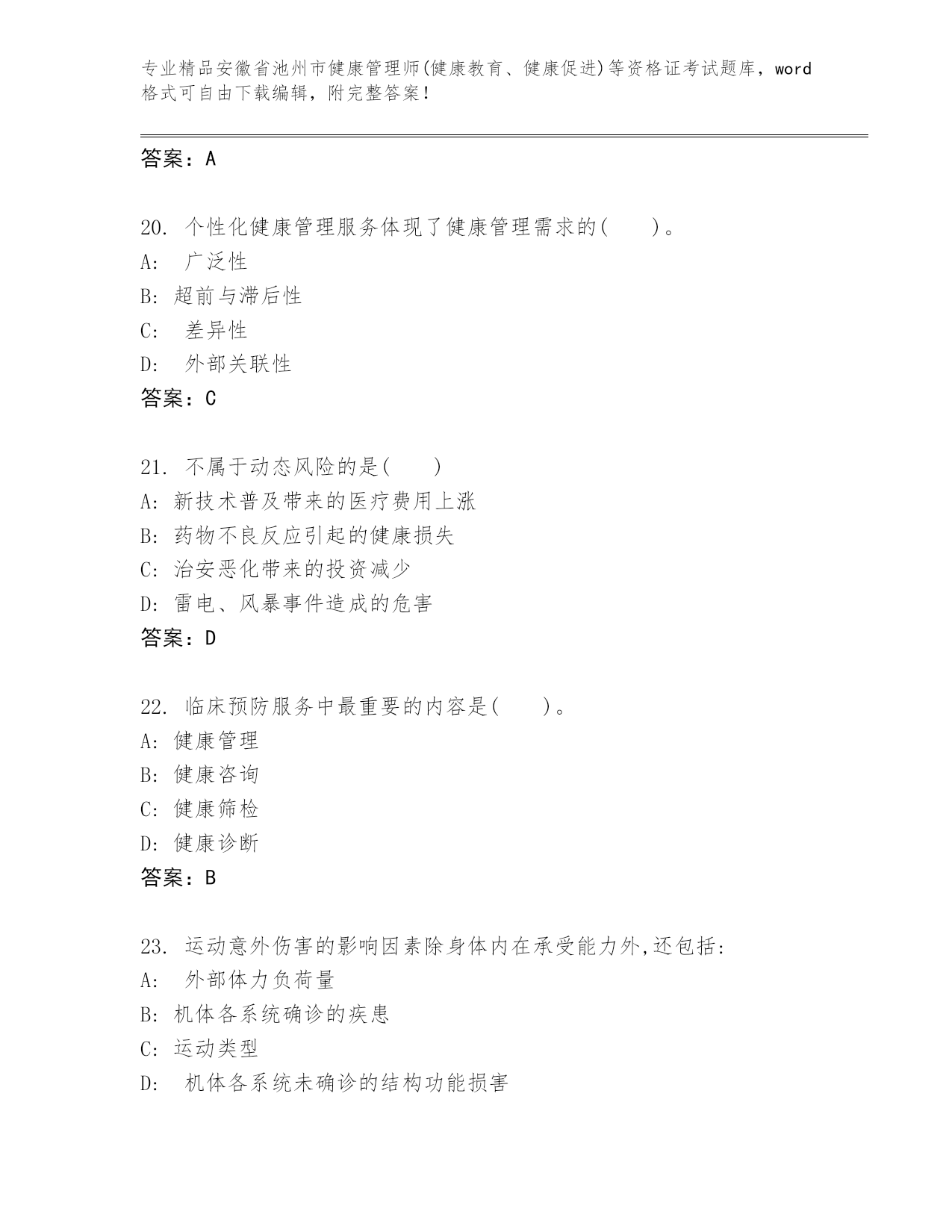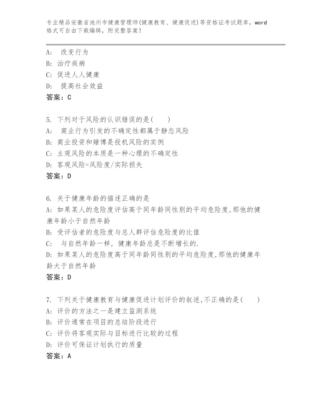 最新安徽省池州市健康管理师(健康教育、健康促进)等资格证考试大全(培优).docx