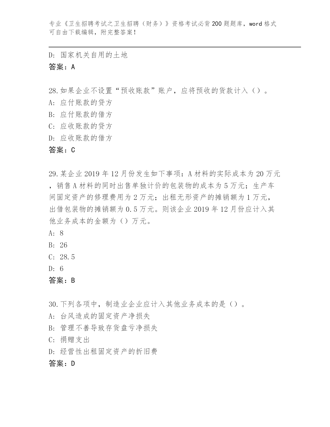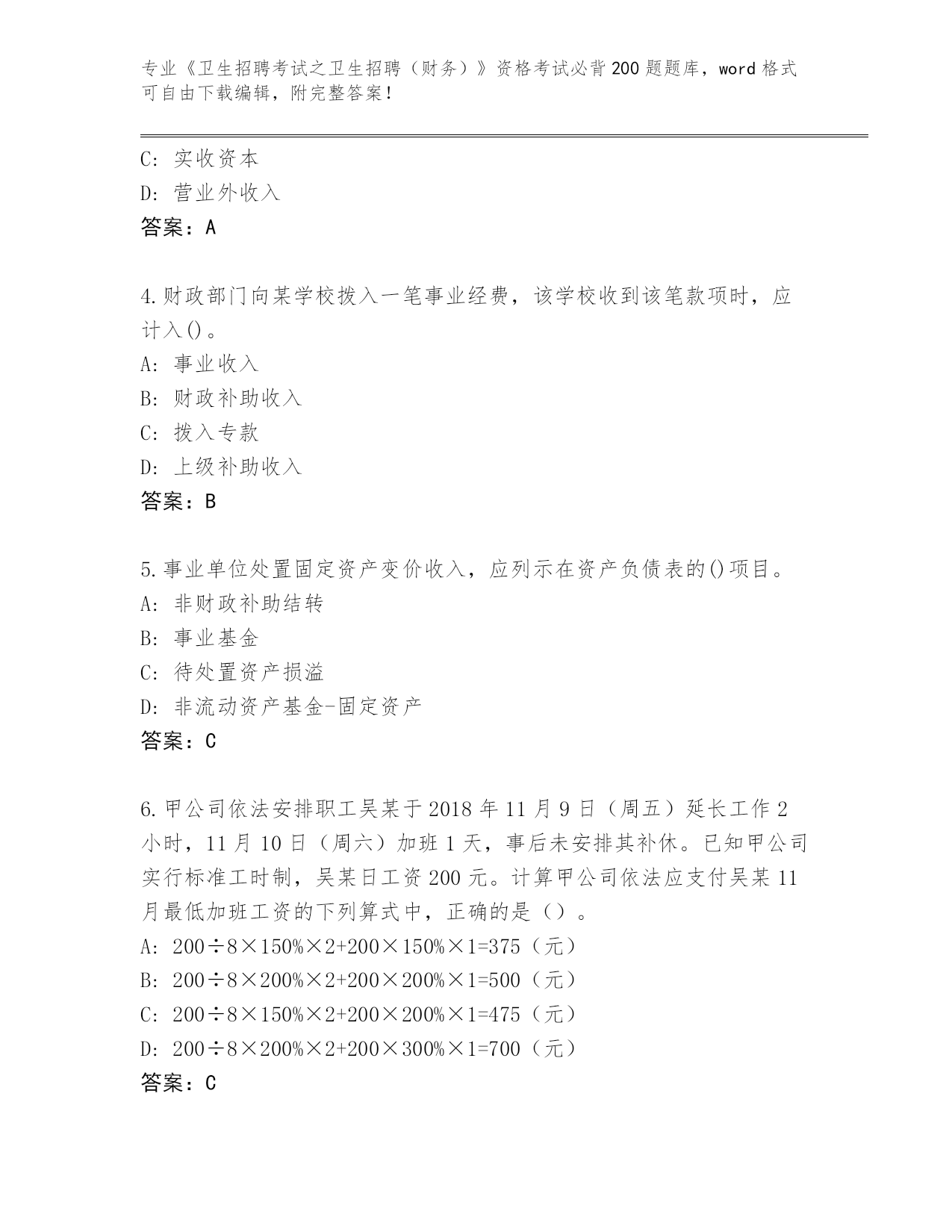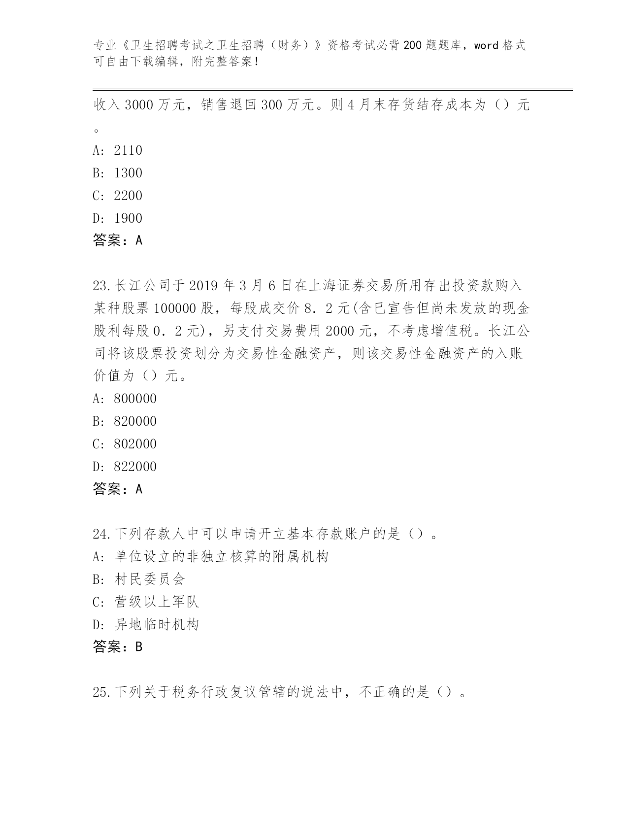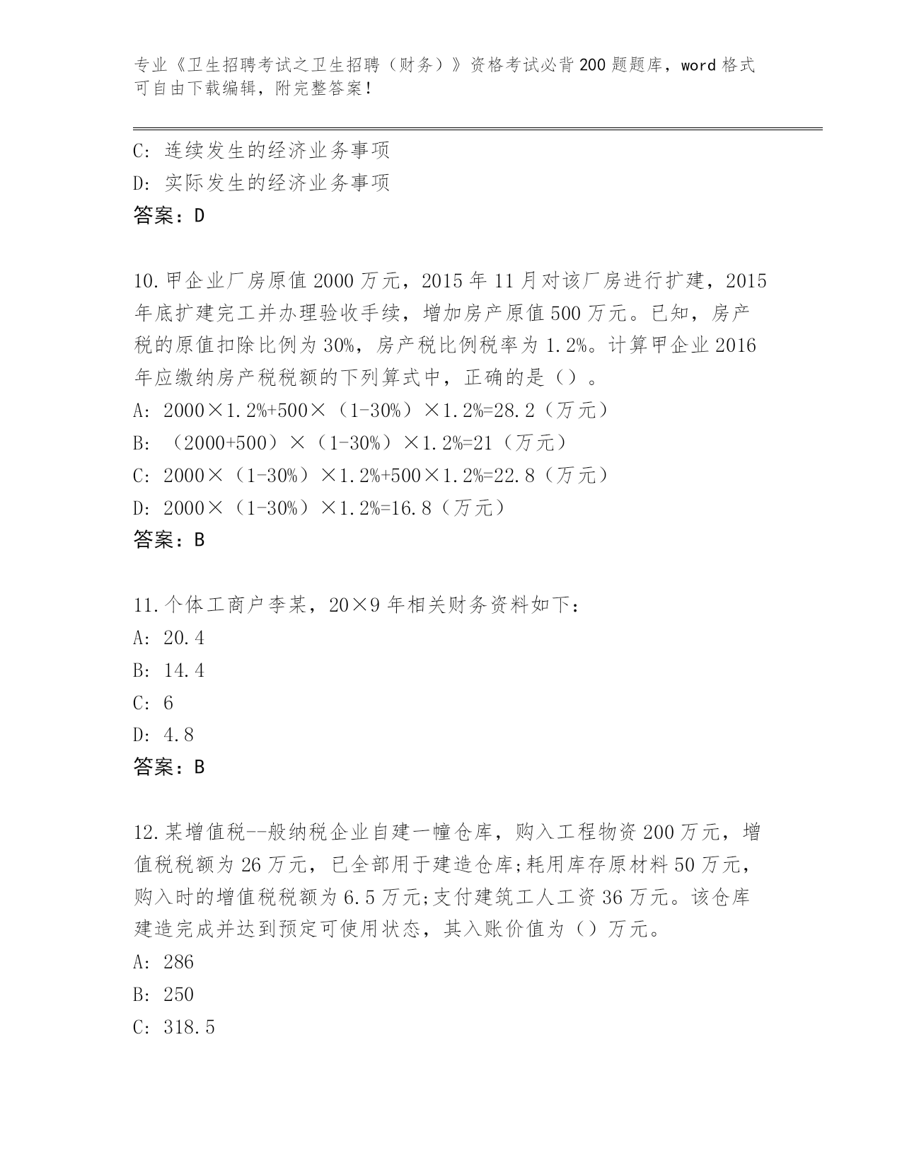 河北省望都县《卫生招聘考试之卫生招聘(财务)》资格考试必背200题大全及答案(名师系列)