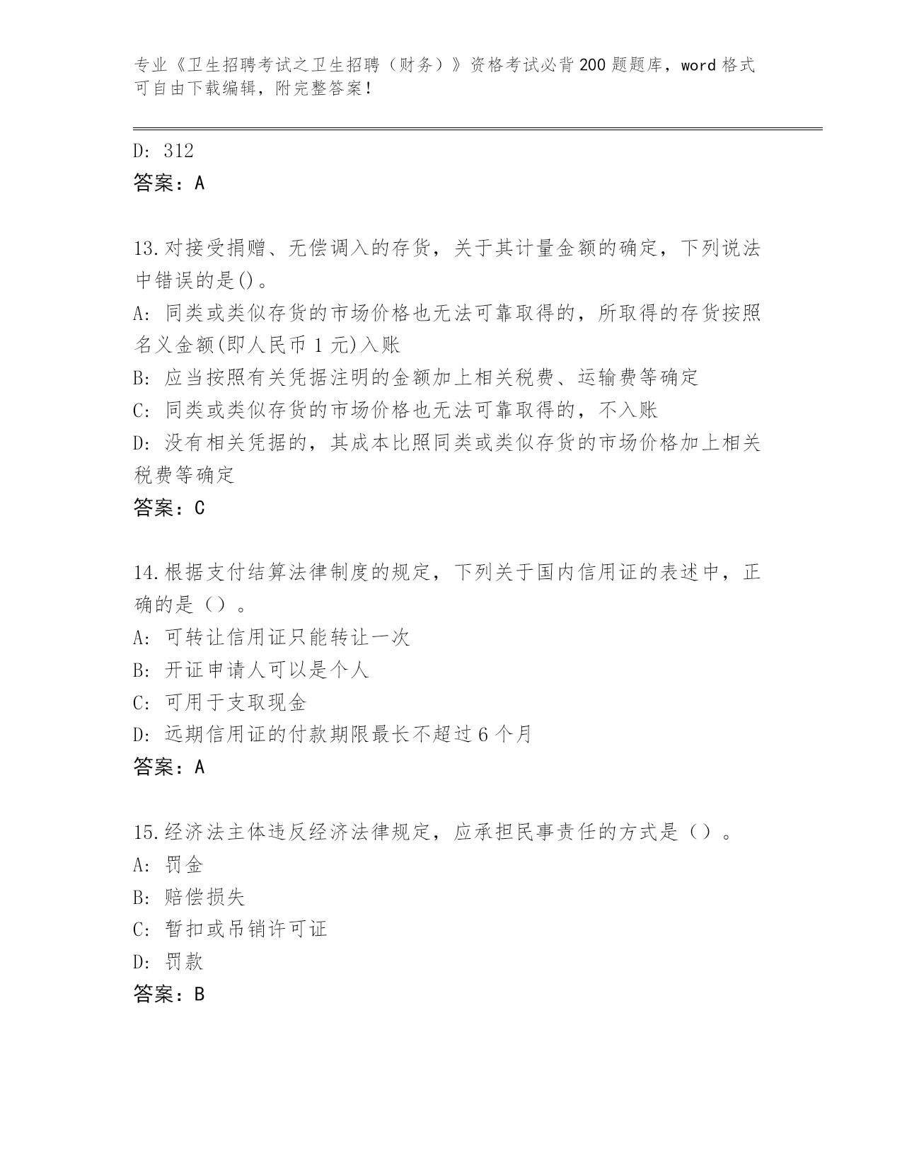河北省《卫生招聘考试之卫生招聘(财务)》资格考试必背200题大全(必刷)