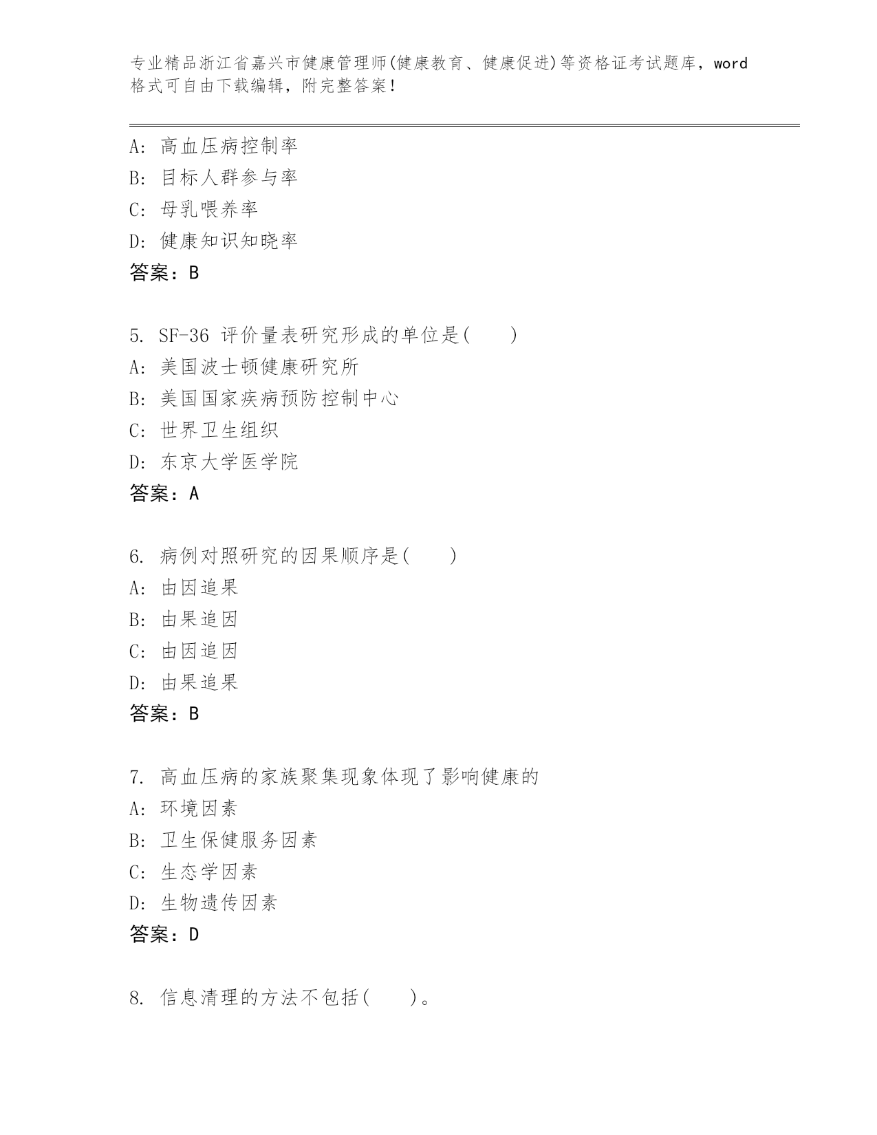 浙江省嘉兴市健康管理师(健康教育、健康促进)等资格证考试完整版【含答案】